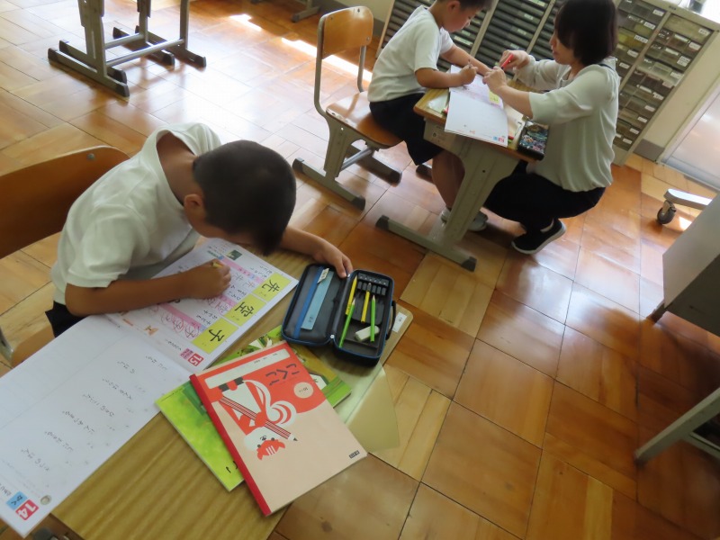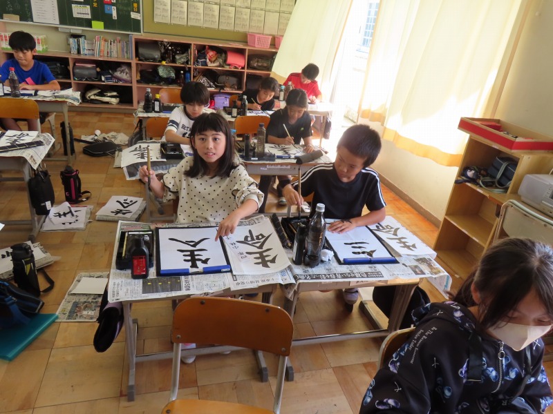 本日の授業の様子です。運動会練習や書写、図工などみんな笑顔で取り組んでいます。