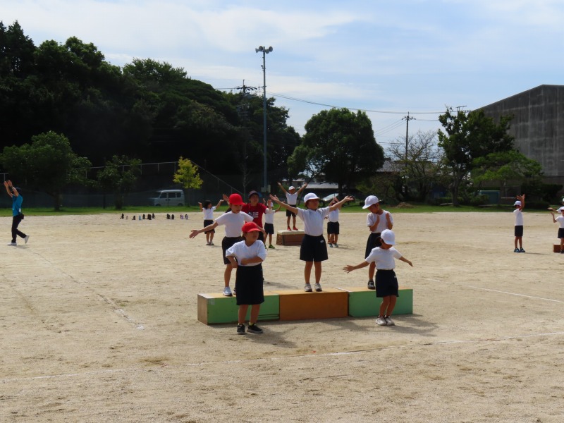 1・2年生は体育で運動会の練習に熱が入ります。今日もしっかりダンスの練習ができました。