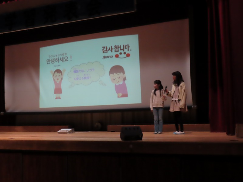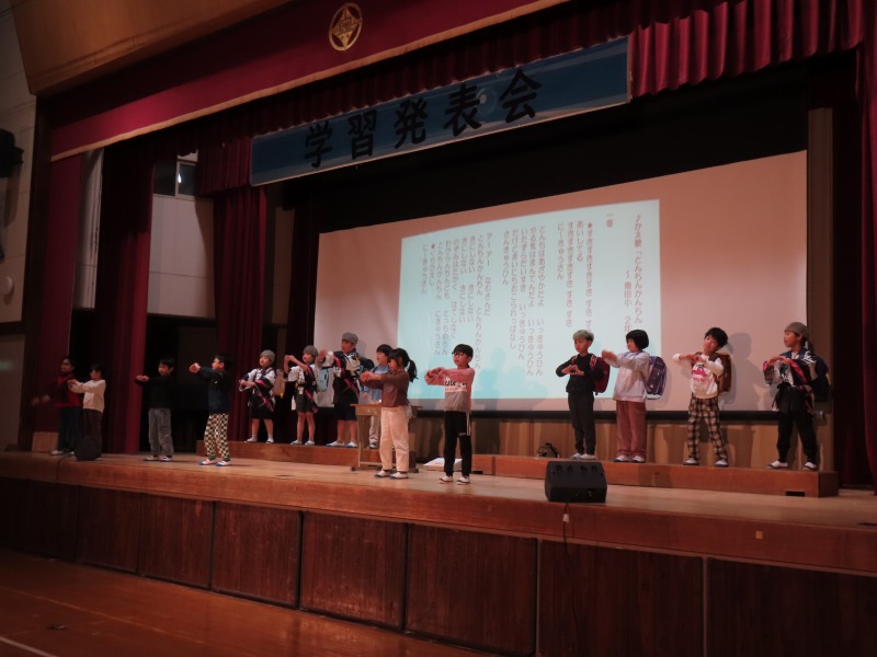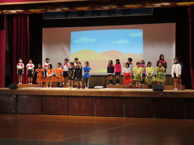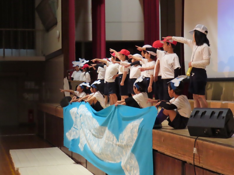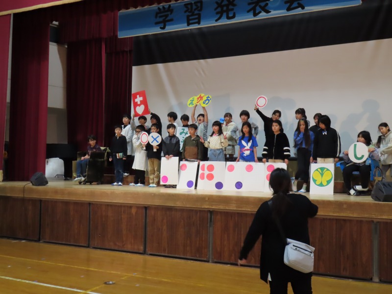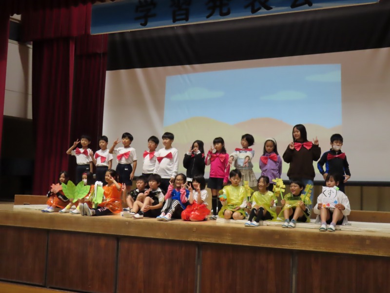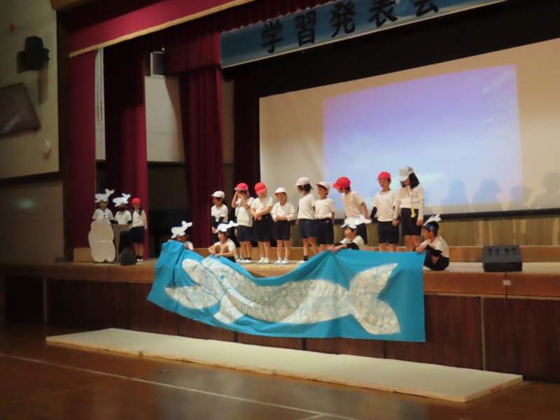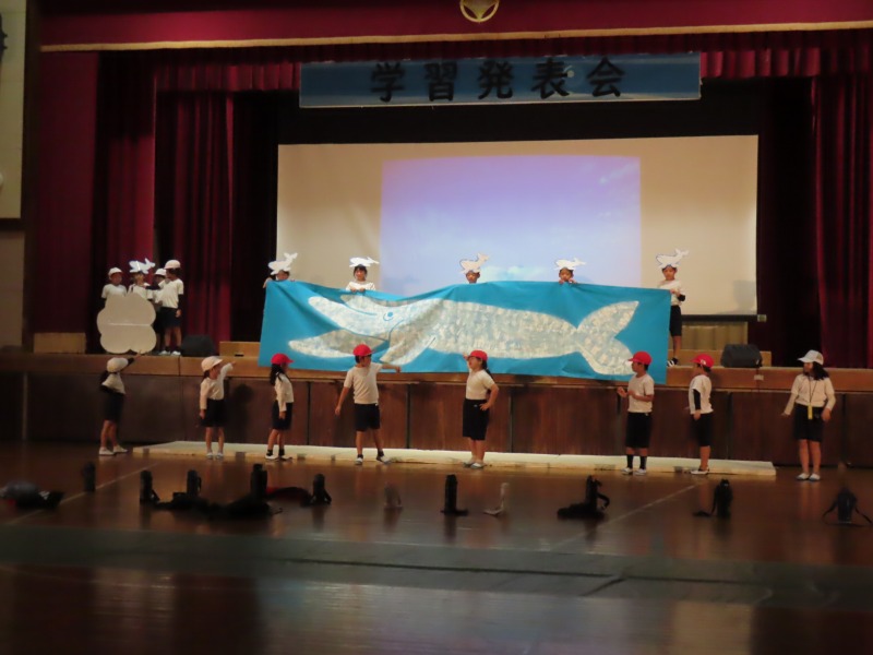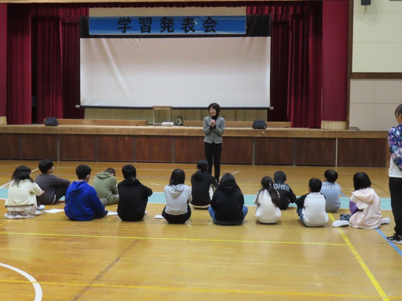 学習発表会に向けての練習に熱が入ります、まだ声も小さめですが、徐々に完成に近づけてくれることでしょう。6年生は図工で大きな和紙に墨で絵をかいています。4年生は金づちやのこぎりを使って木材を使った作品に挑戦しています。1年生は外国語活動で英語で先生とお話しできました。