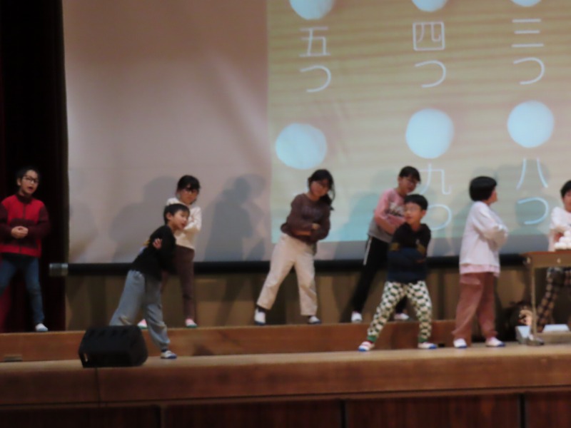 午後に文化庁公演 「ないたあかおに」の演劇を鑑賞します。そのワークショップとして2時間目に、ダンスをしたりステージに配置される大道具に絵をかいたりしました。子どもたちはみんな笑顔で楽しく参加しました。午後からの演劇がより楽しみになったようです。