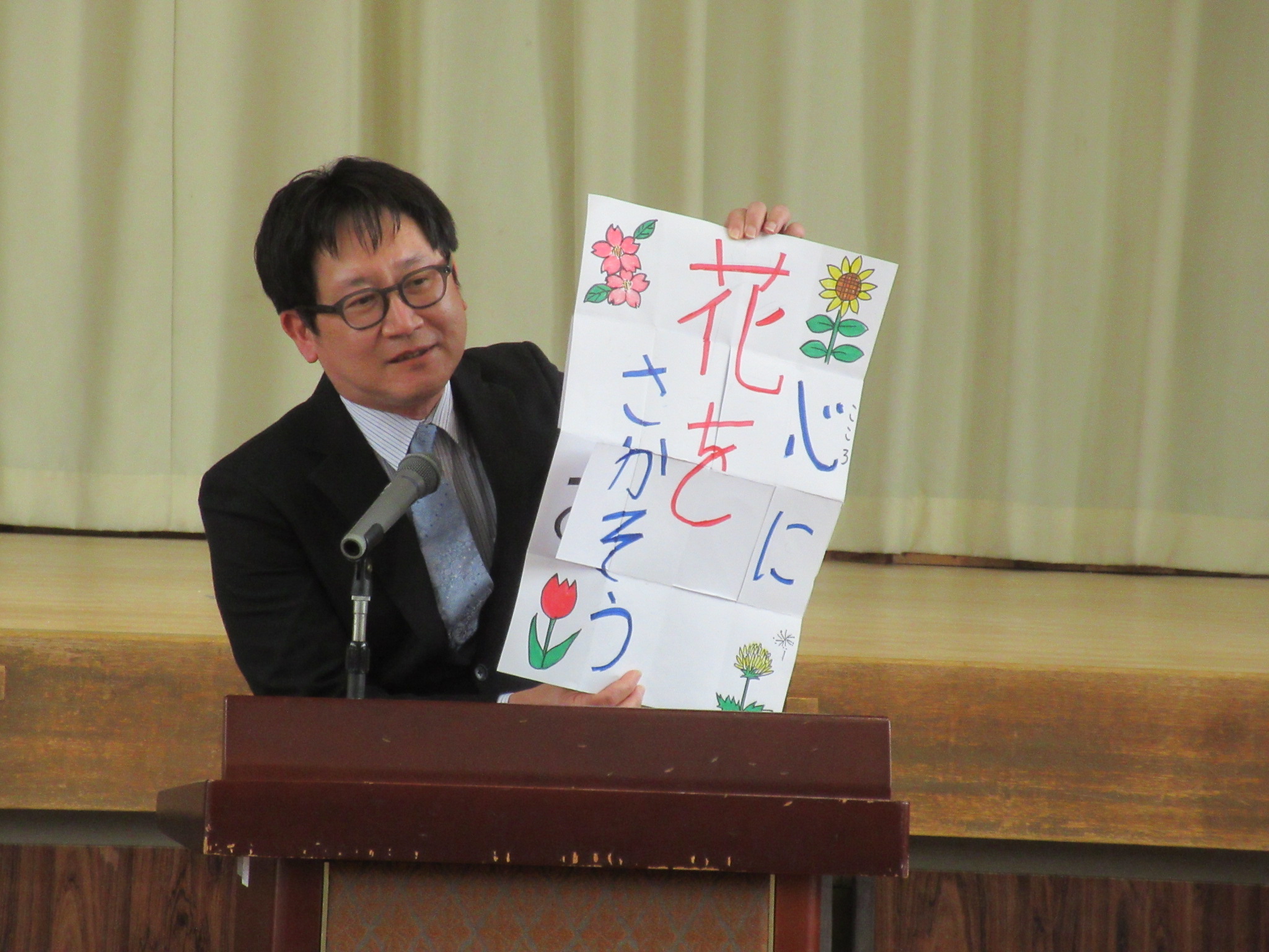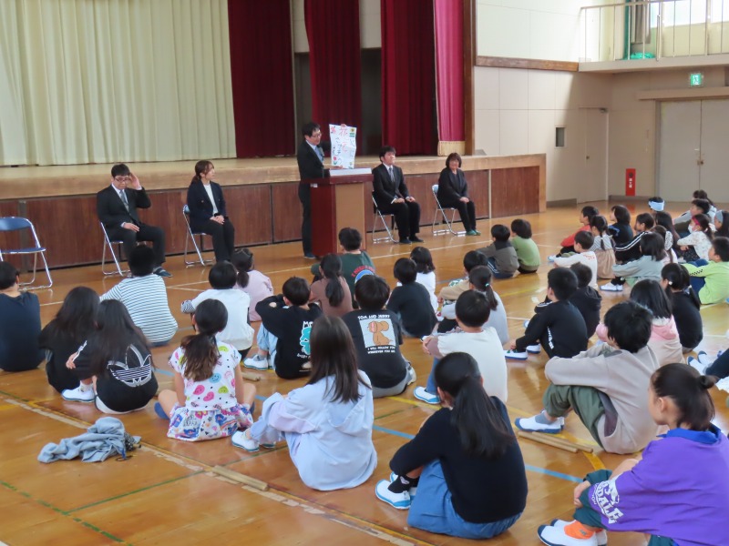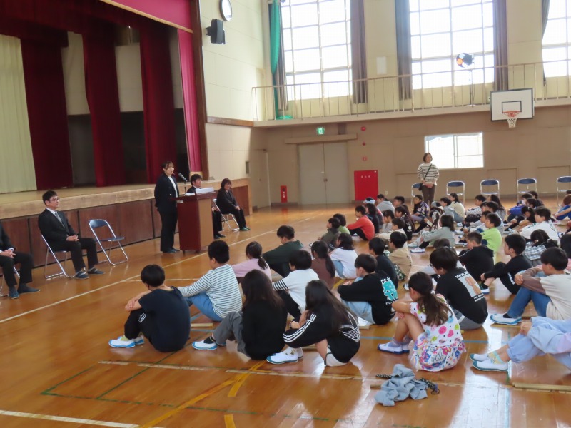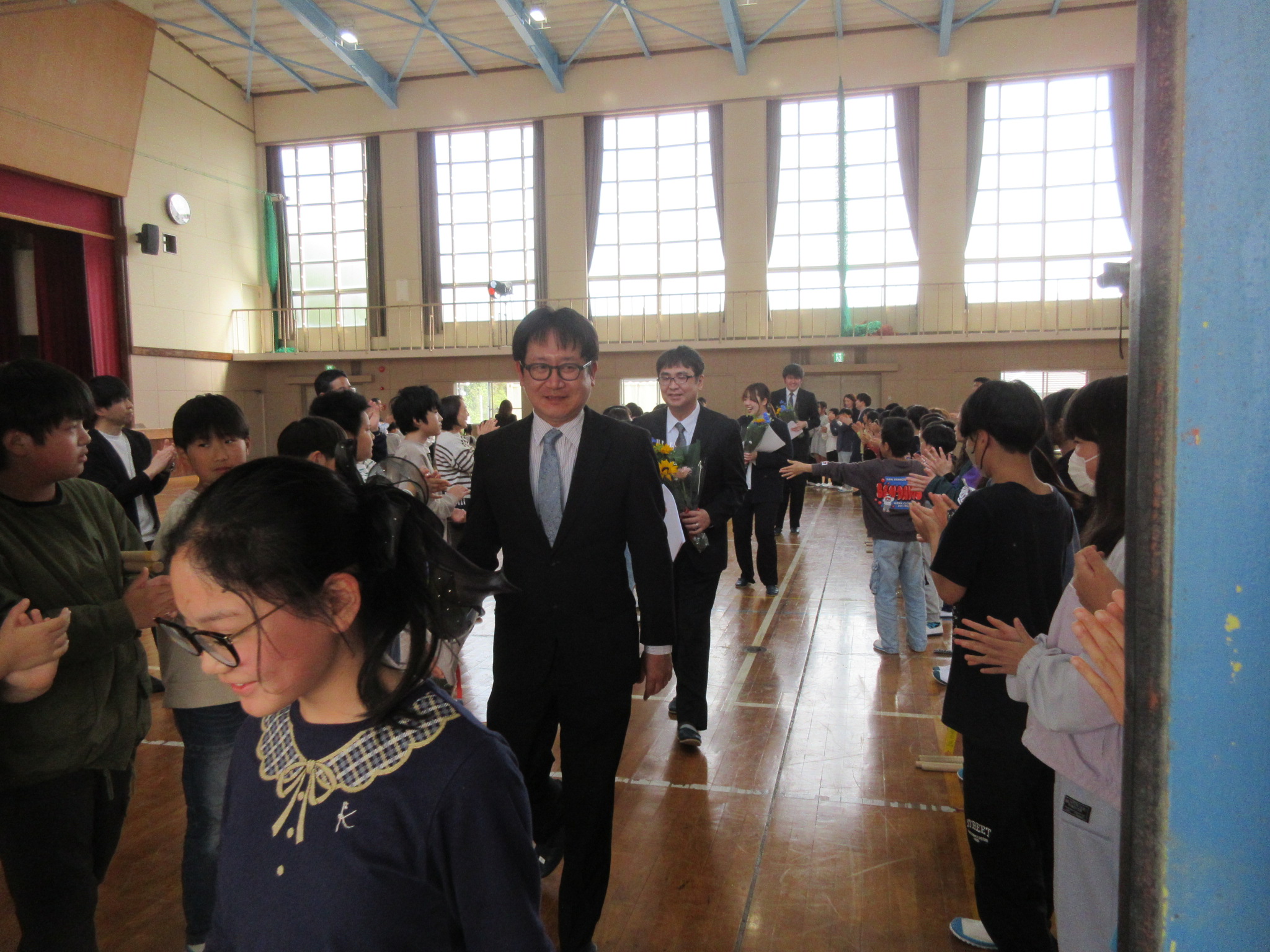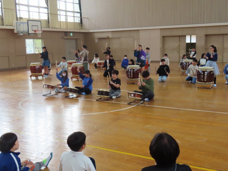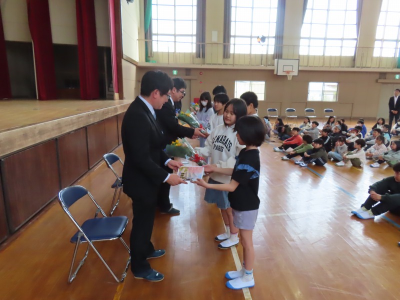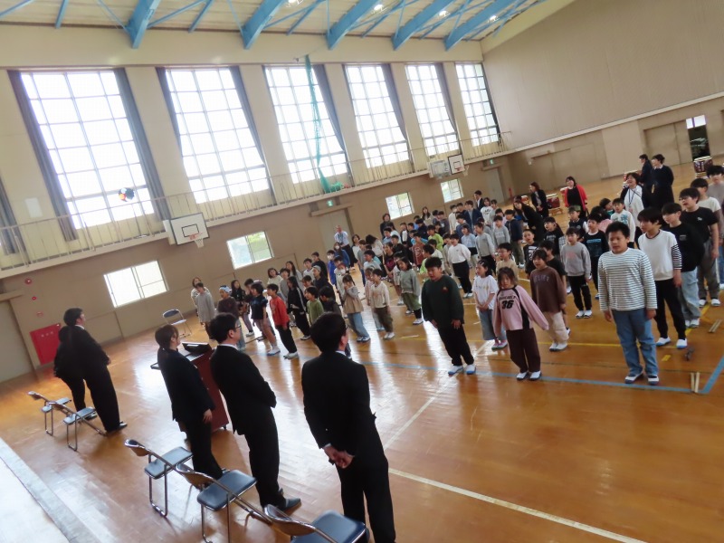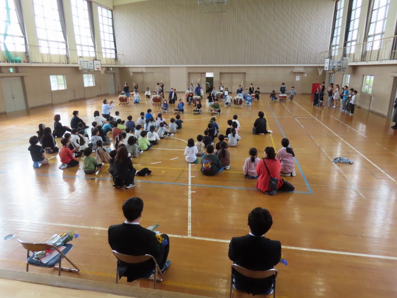 3月末の異動で転出された先生方をお招きし、離任式を行いました。お一人お一人からのお別れのあいさつは、子どもたちの心に響いたことだと思います。会の最後には和太鼓を披露し、心温まるお別れの式となりました。転出した先生方のこれからのご活躍を祈るばかりです。