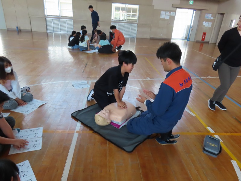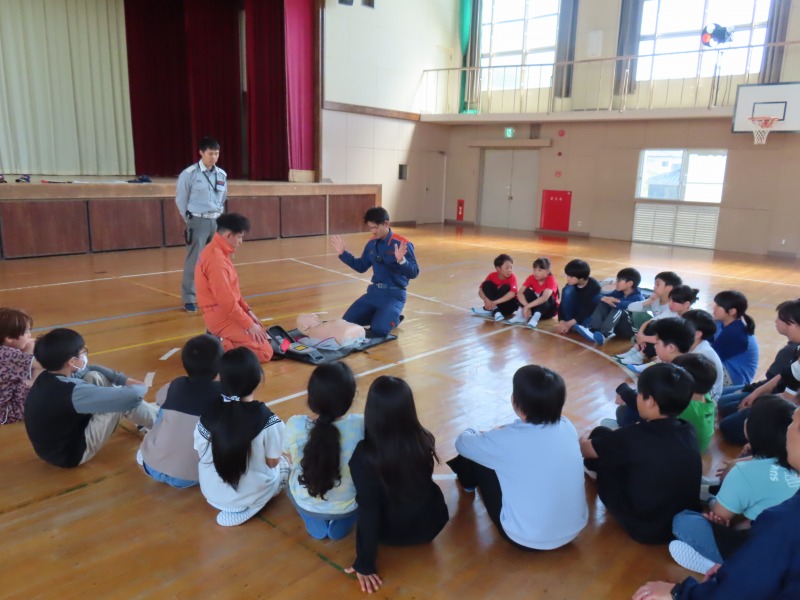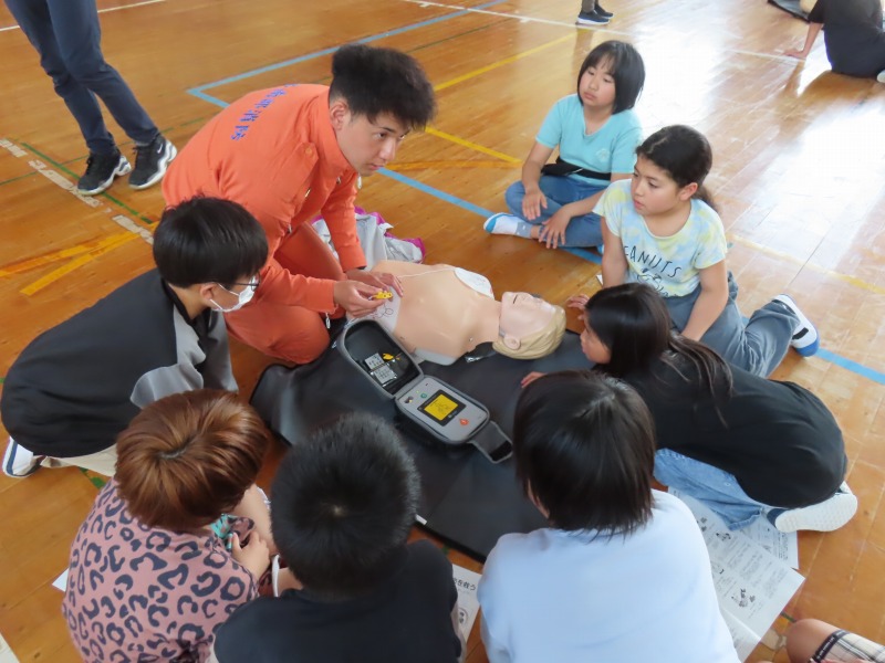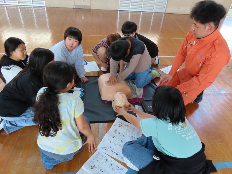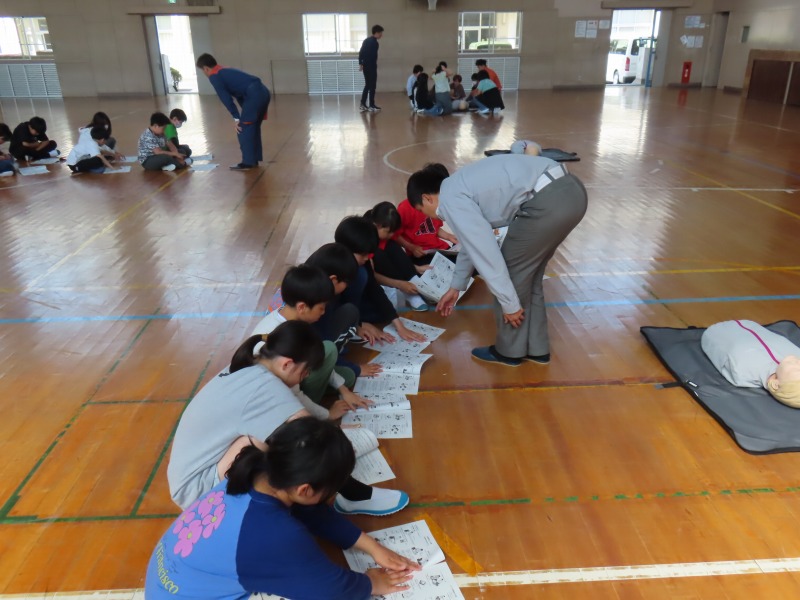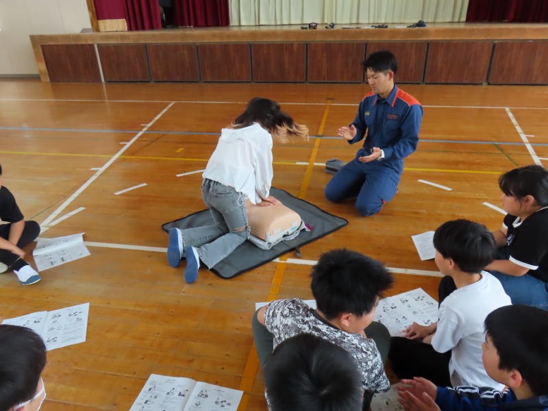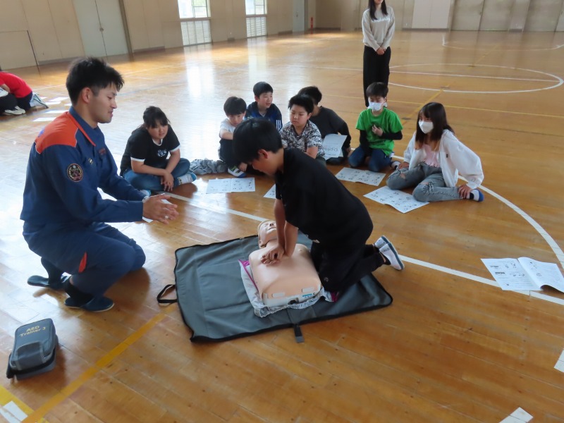 月曜日の午後はどのクラスも道徳です。今日は「あいさつ」や「自分の長所」など話し合っていました。また、5年生は消防署員の救急隊員に方々にきていただき、心肺蘇生法やAEDの使い方を学びました。