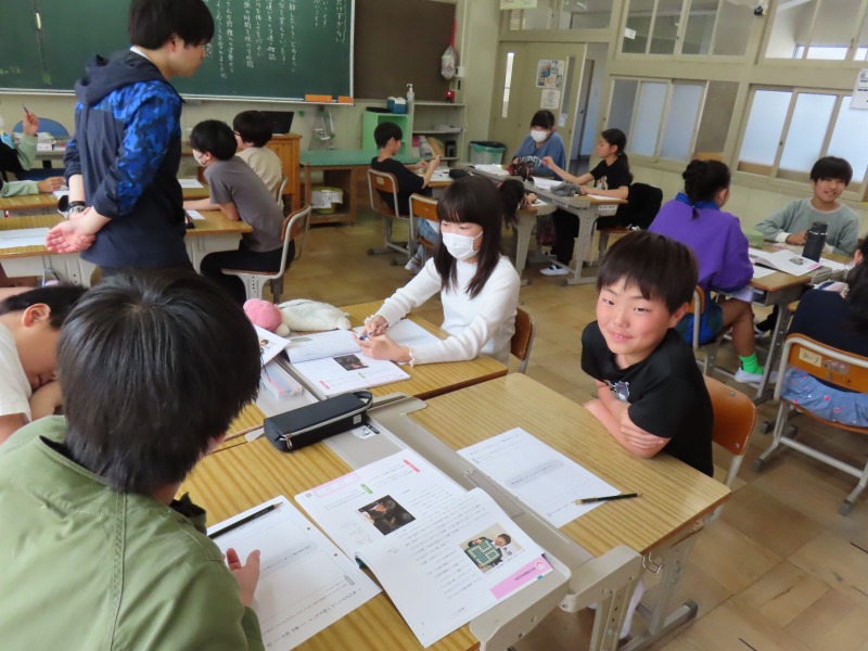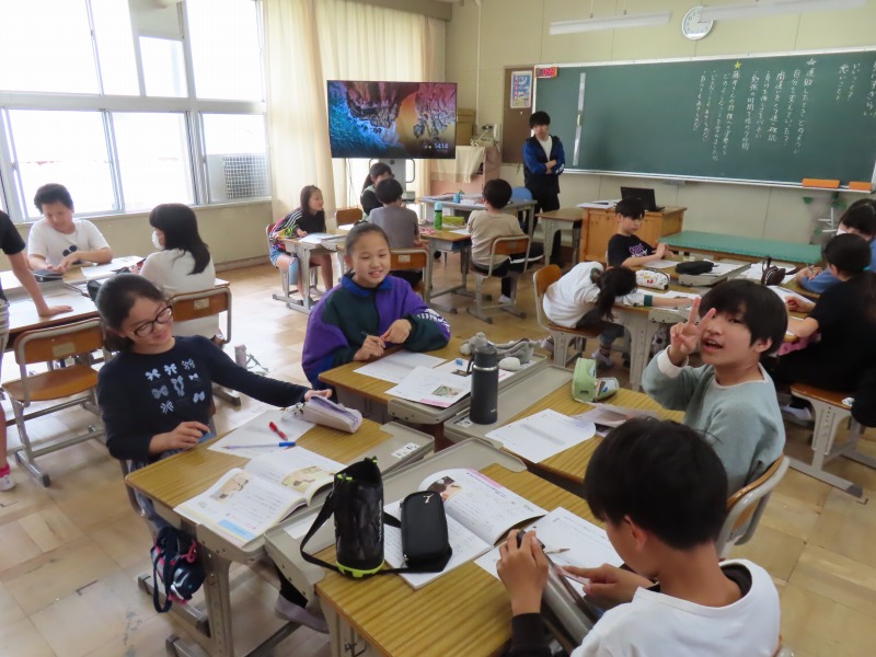 5年生は社会でした。世界の国々の名前でビンゴをしていました。6年生は音楽です。たくさんの歌を元気よく歌っています。