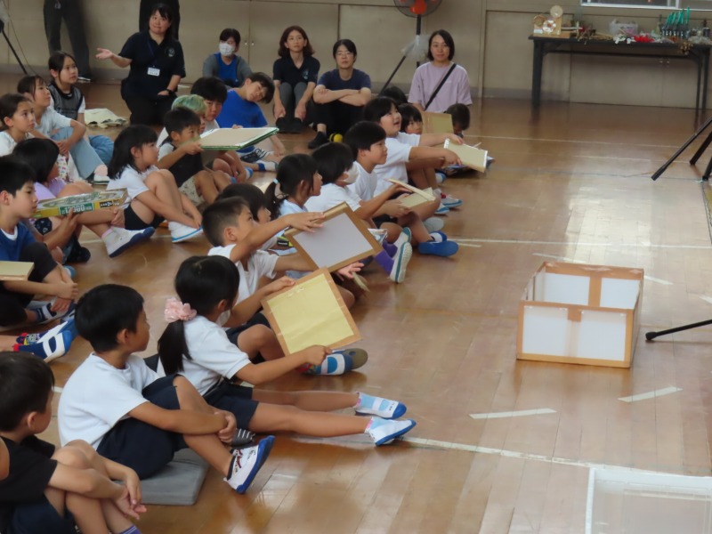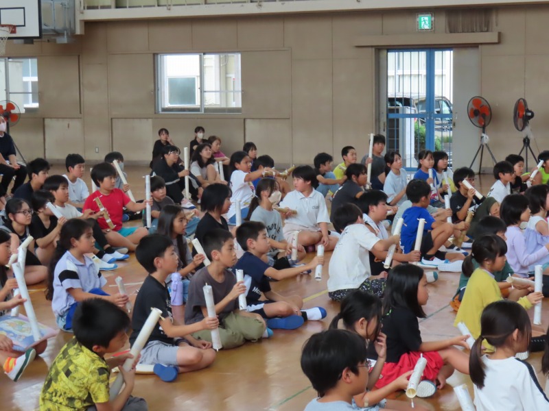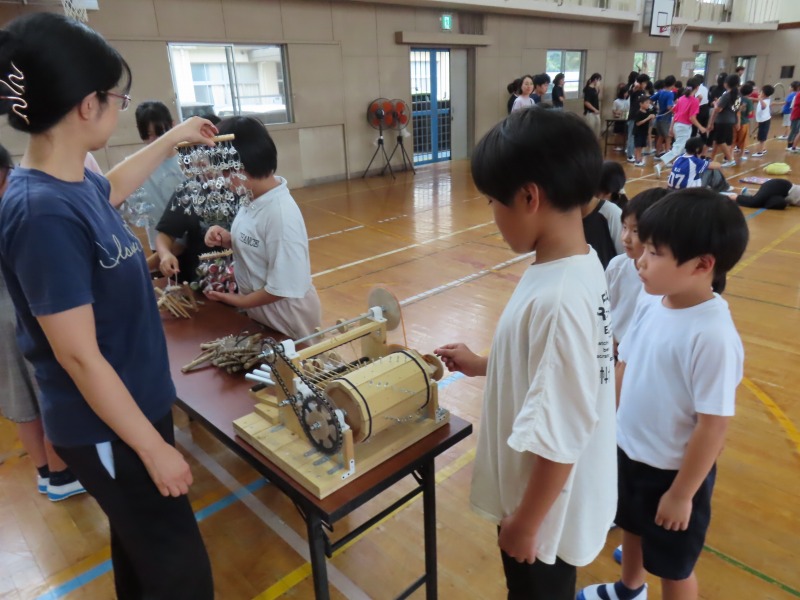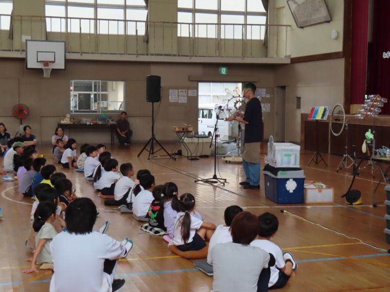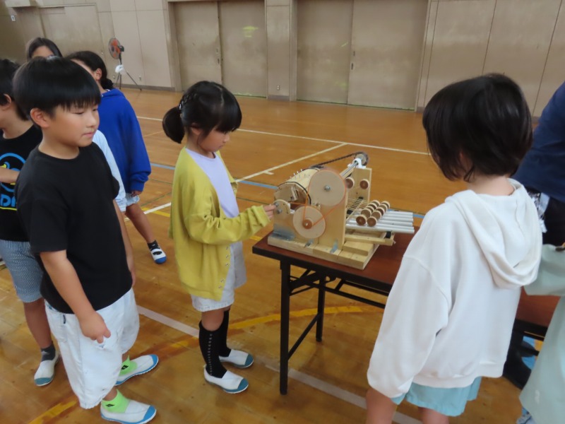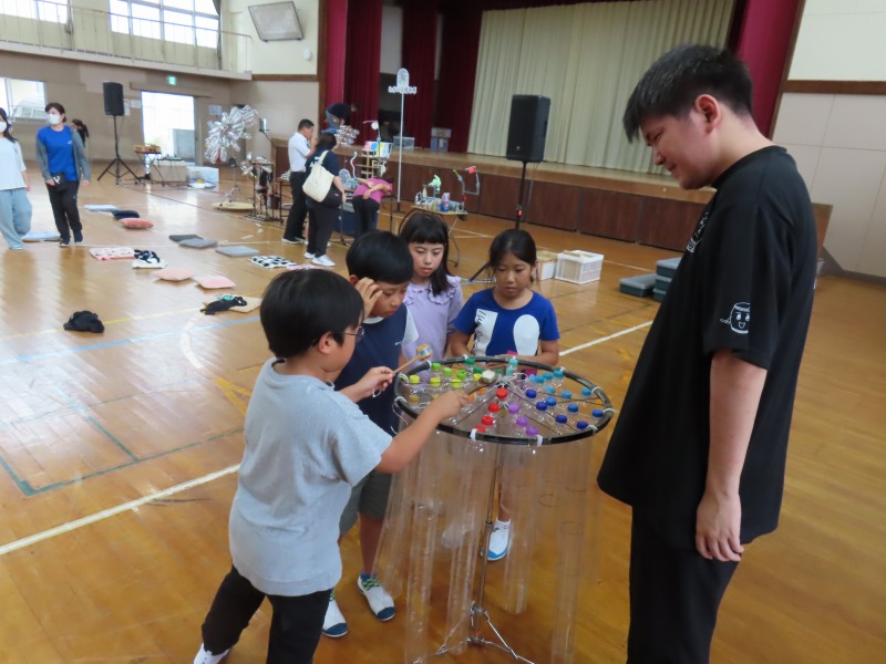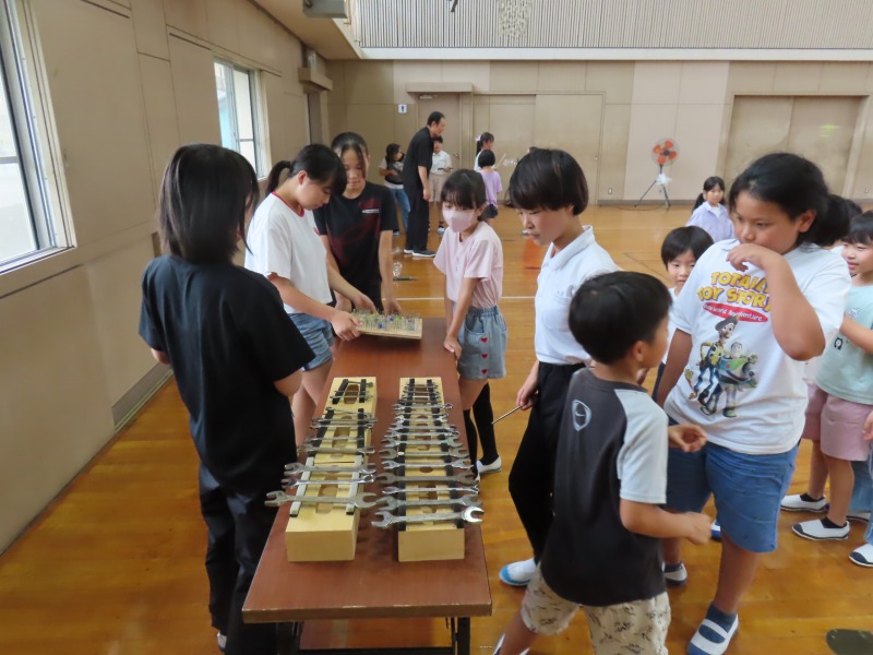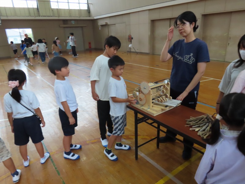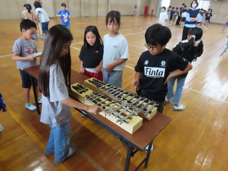今日はみらい楽器ラボの演奏会が行われました。ペットボトルや段ボール、空き缶などを楽器にしていろいろな曲を演奏してくれました。最後には楽器を体験させてもらい、こどもたちも大満足でした。