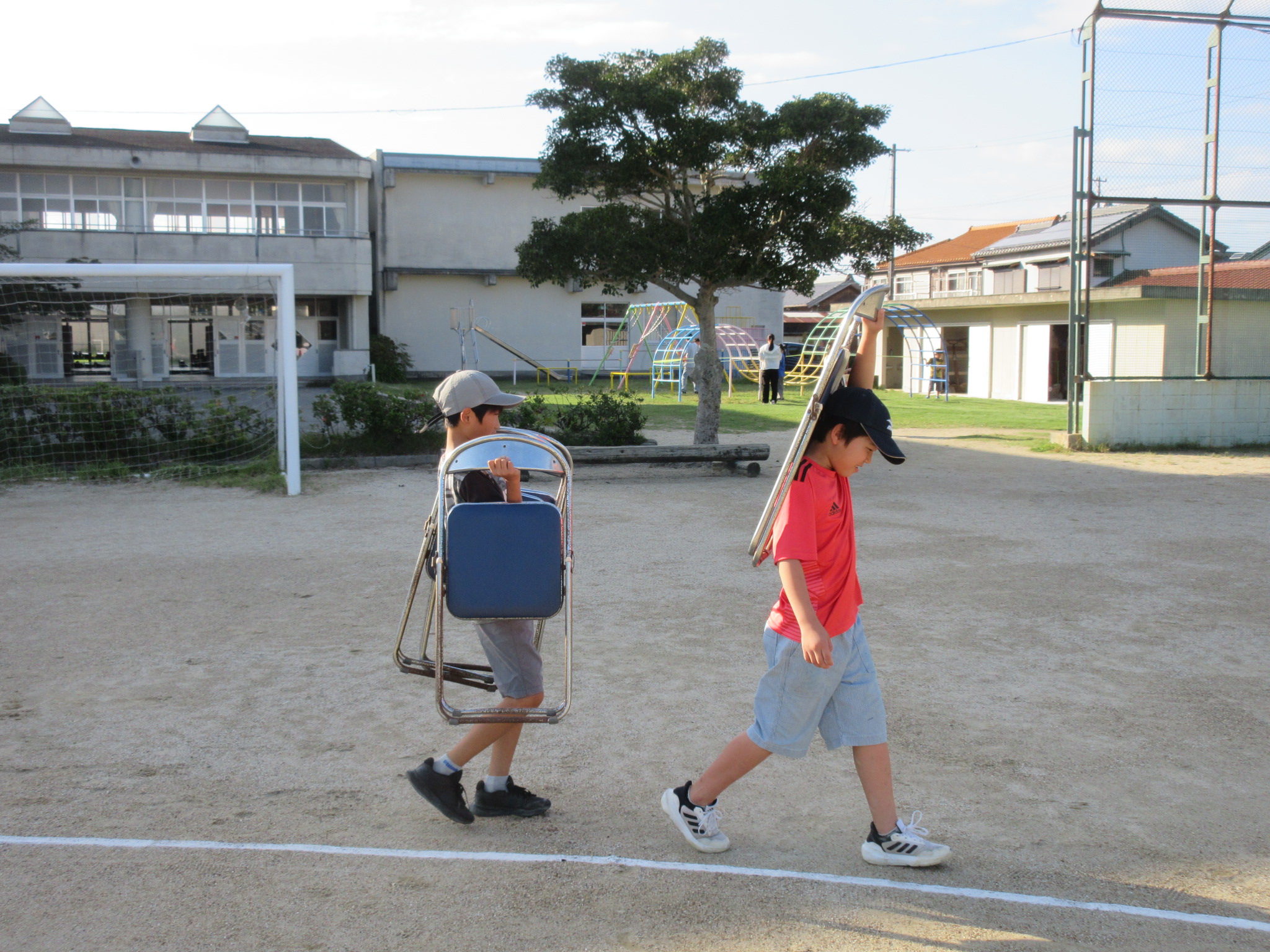 子どもたちの思いが通じ、明日の天気は心配しなくてもよさそうです。本日6時間目に、委員会ごとに分かれ、運動会の準備をしました。