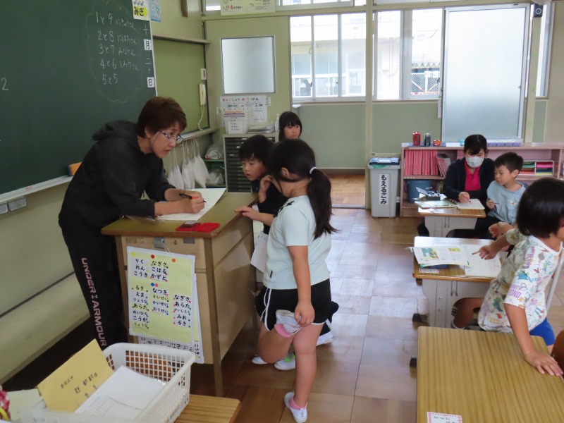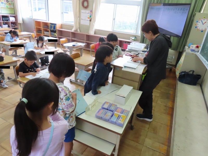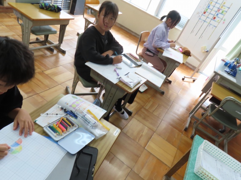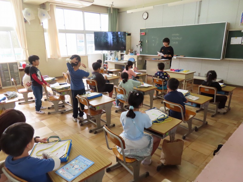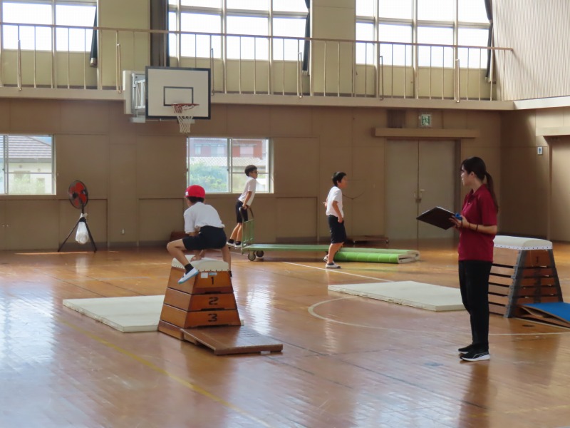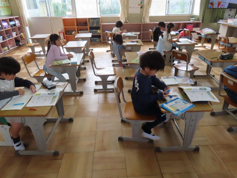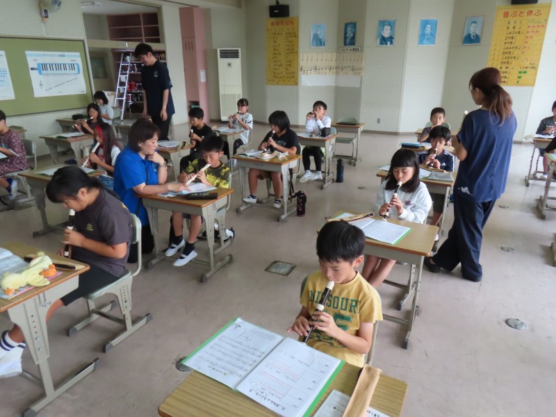 運動会を土曜日に無事終え、少し疲れの残る月曜日ですが、みんな元気に活動しています。体育では、跳び箱のテストや高飛びの記録会などが行われていました。教室でも算数や国語など、真剣に取り組む様子が見られます。音楽では「もののけ姫」をリコーダーで合奏しています。とても上手に吹けています。