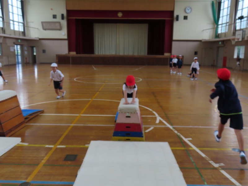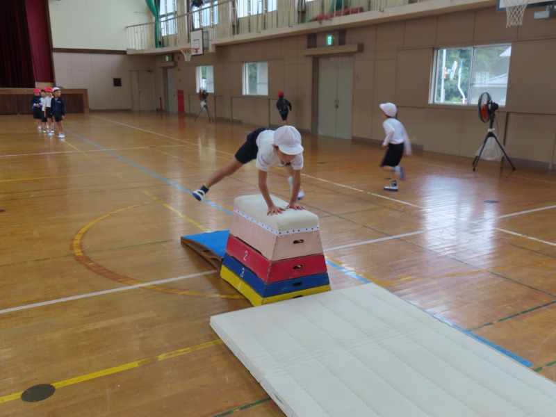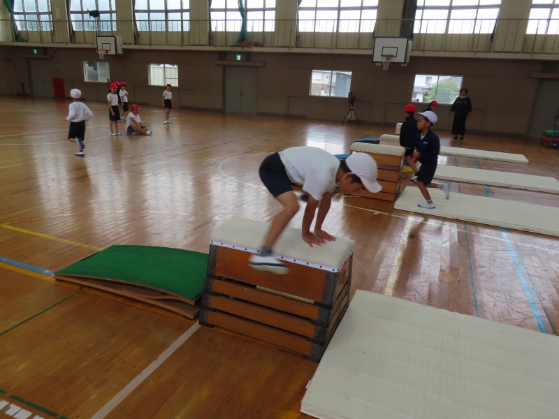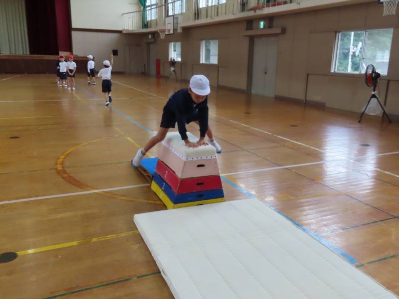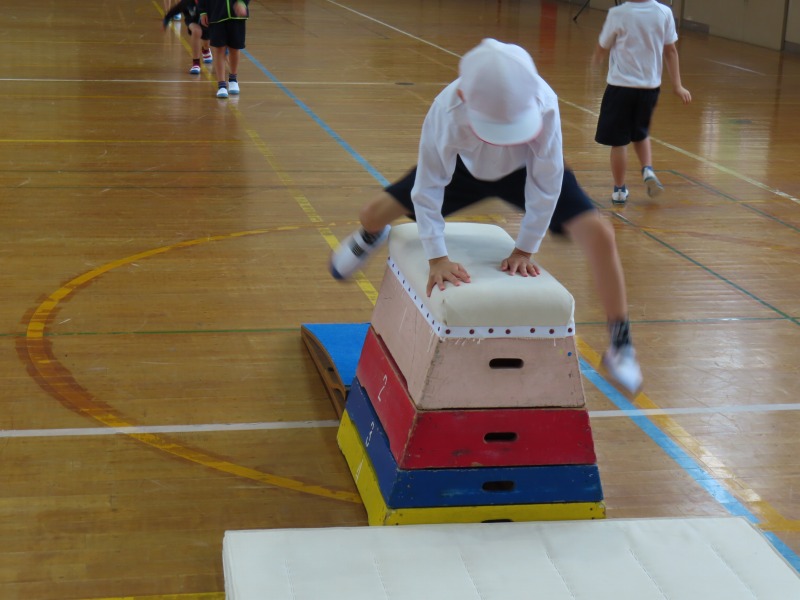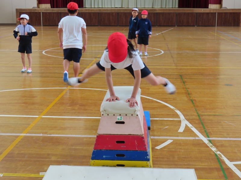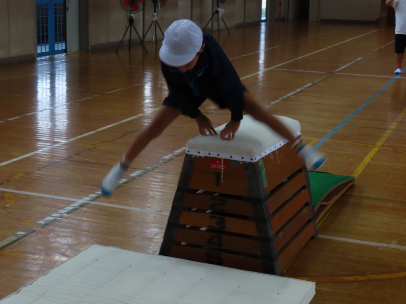 2年生の体育では跳び箱の練習をしていました。何度も何度も練習している姿が印象的です。