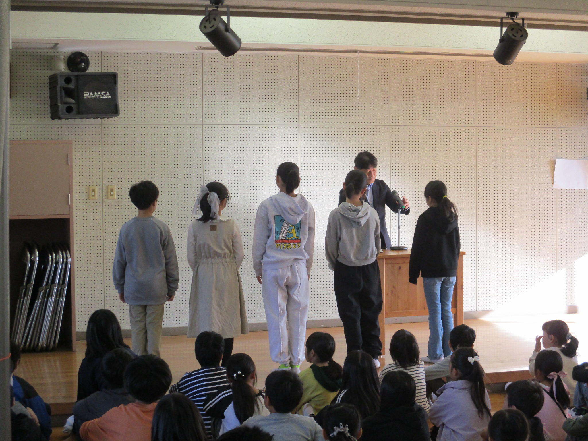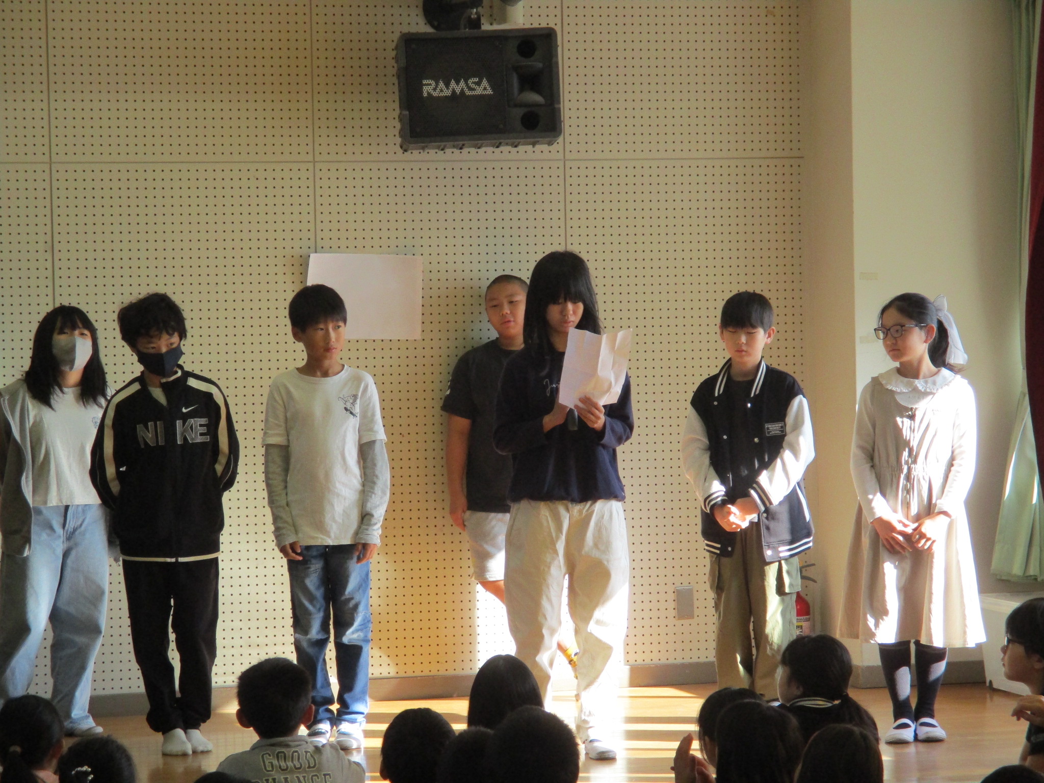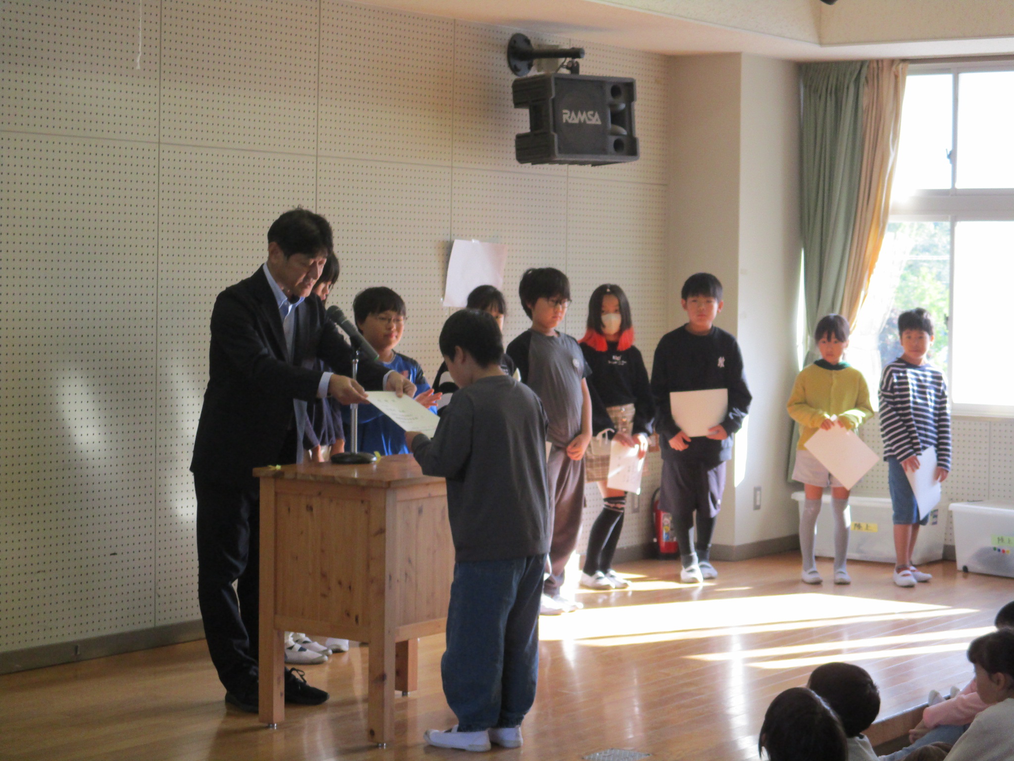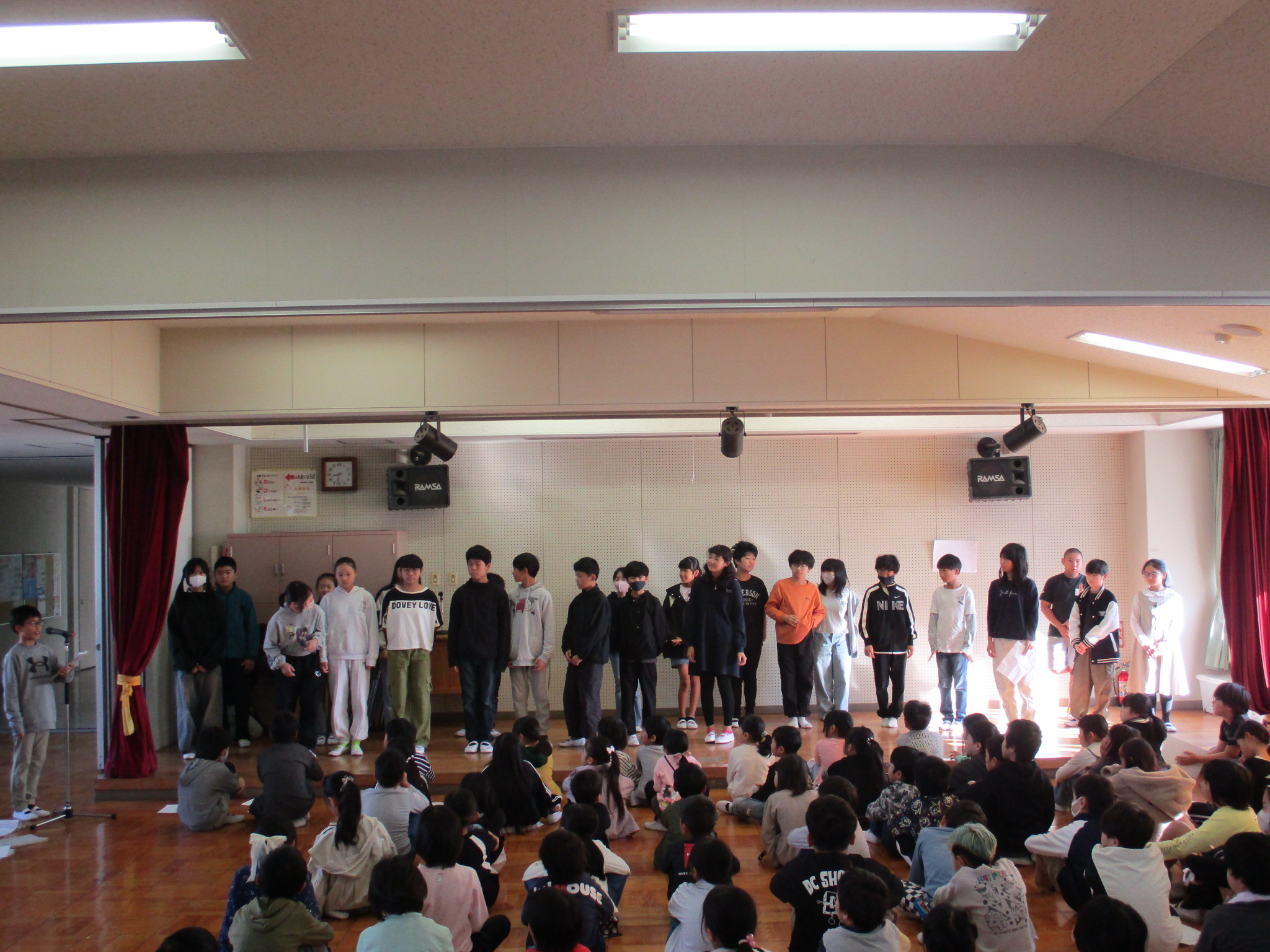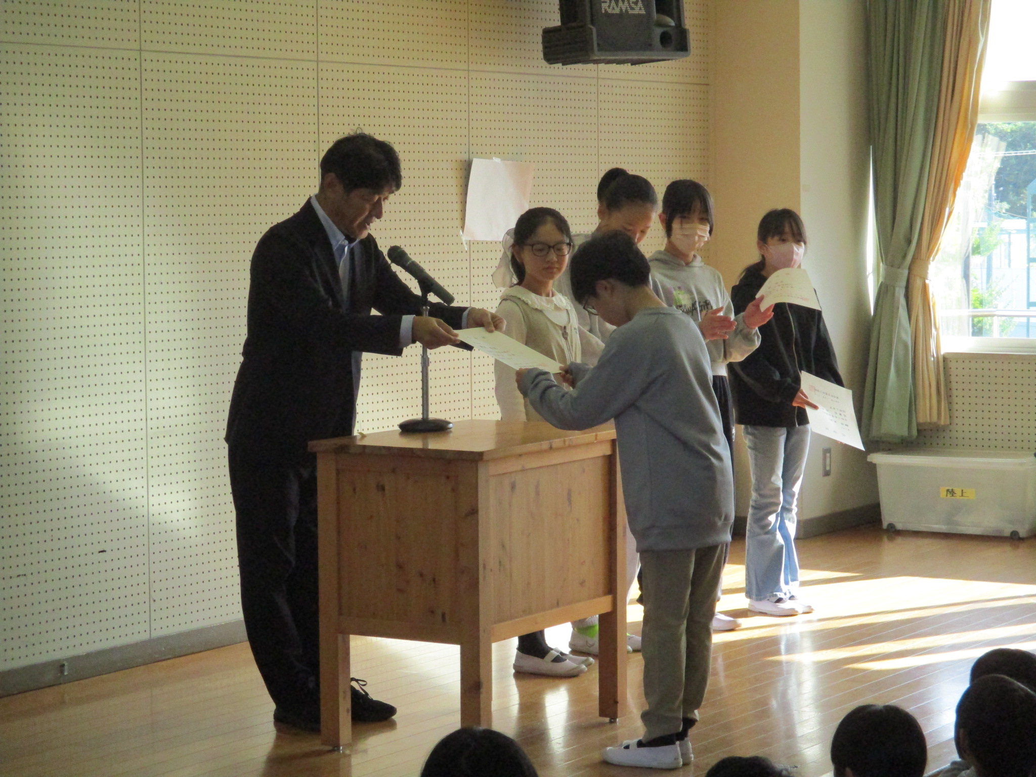 本日の朝会では、後期児童会役員・学級委員・委員長の任命がありました。また、今週行われる陸上競技大会の総会が行われました。