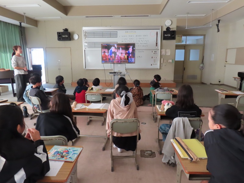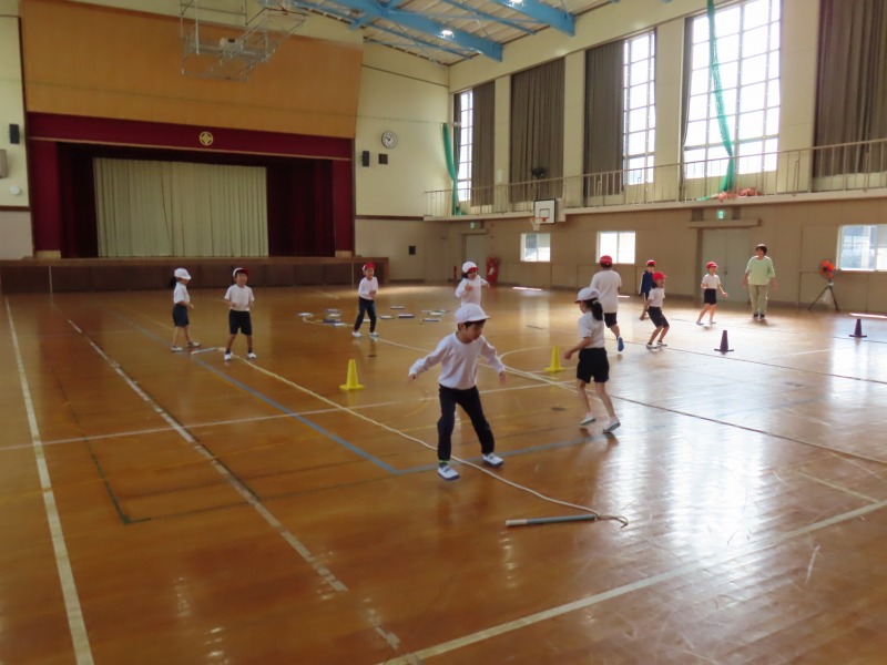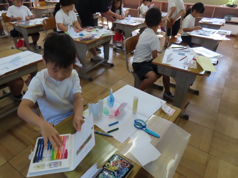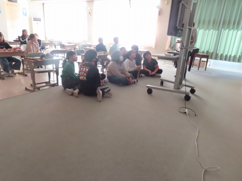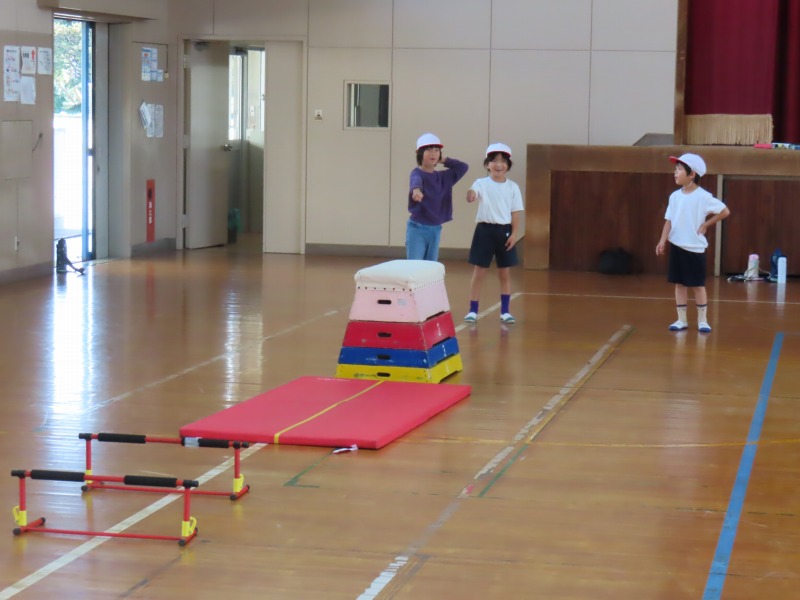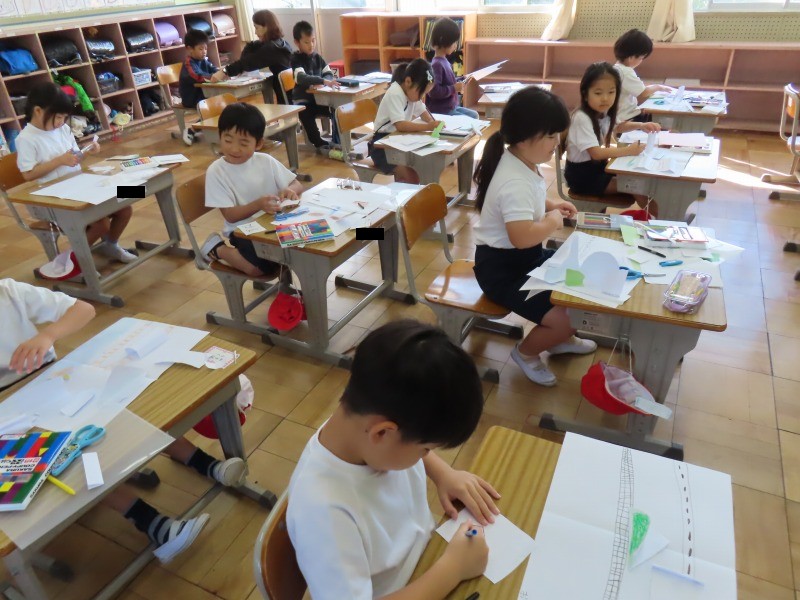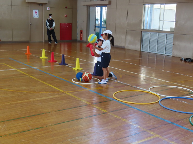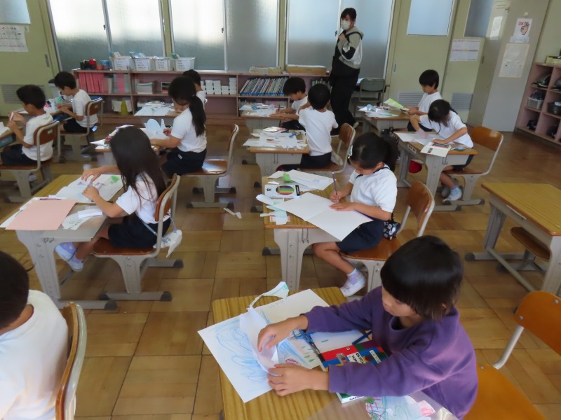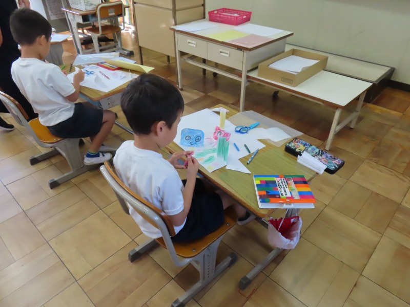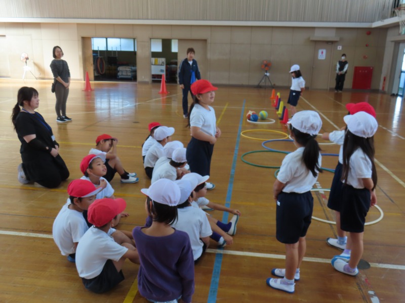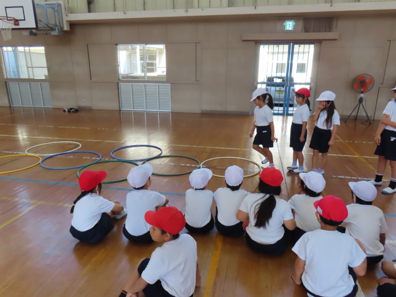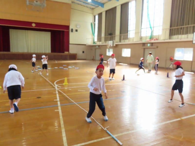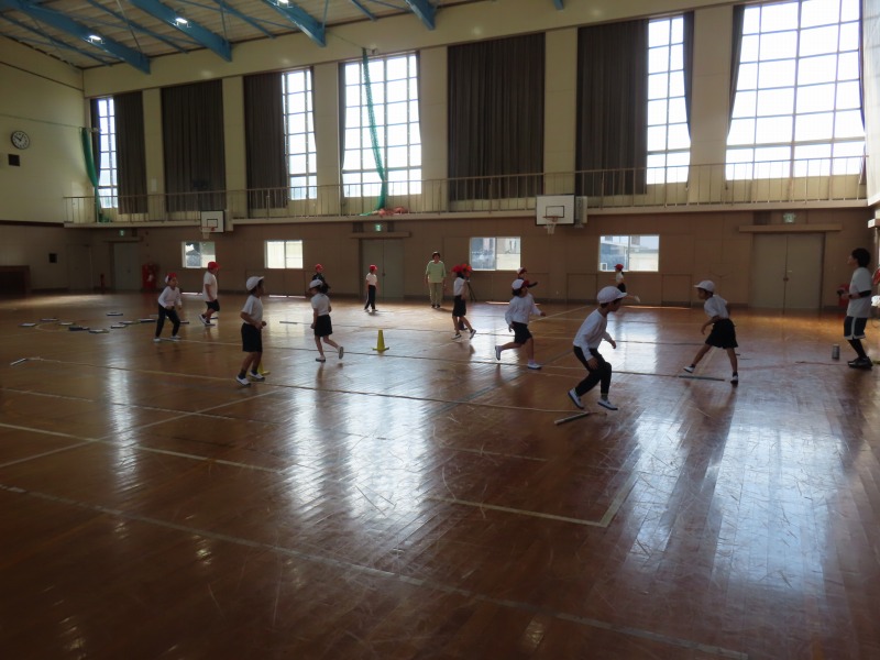 今日の授業の様子です。4年生は情報教育アドバイザーの先生の指導でプログラミングを学びました。キャラクターを動かしたり、音を出したり楽しみながらプログラミング学んでいます。3年生は書写で「小川」をかきました。1年生は体育でグループに分かれ障害物をつかったゲームを考えていました。