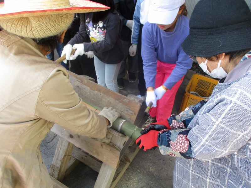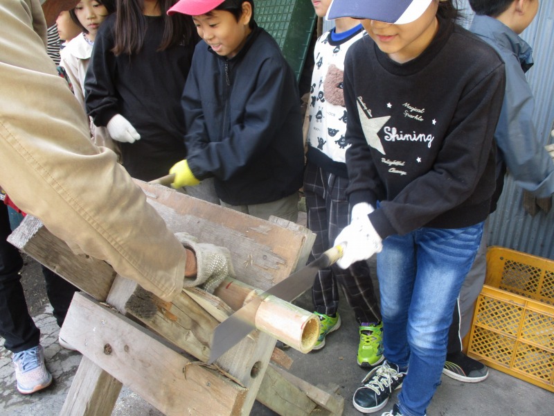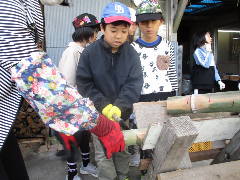 3年生は2・3限で校外学習に出掛けました。竹炭づくりの体験をさせてもらいました。竹を割ったり、のこぎりで切断したりと慣れない作業もけがなくできました。