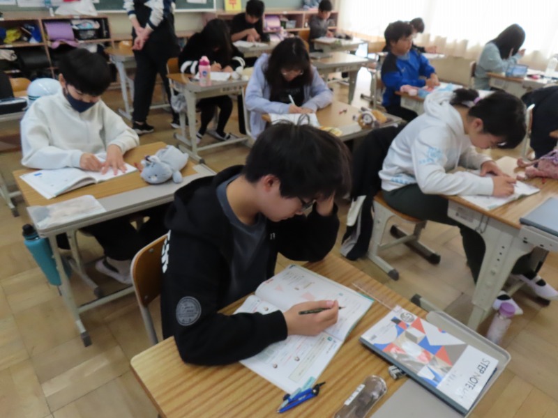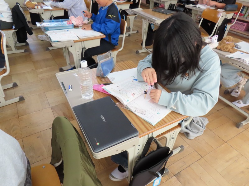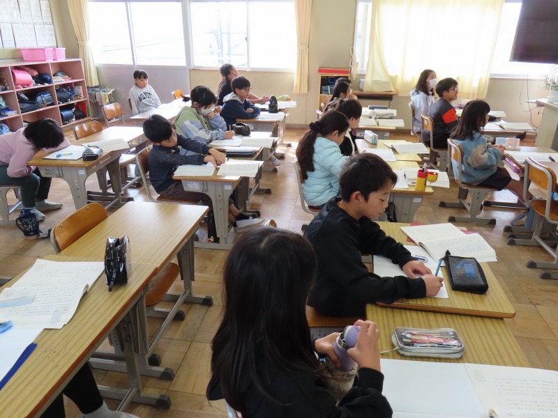 今日の授業の様子です。5年生が校外学習に出掛けているため、心なしか学校が少し静かなような気がします。学習発表会の練習も少しずつはじまっています。