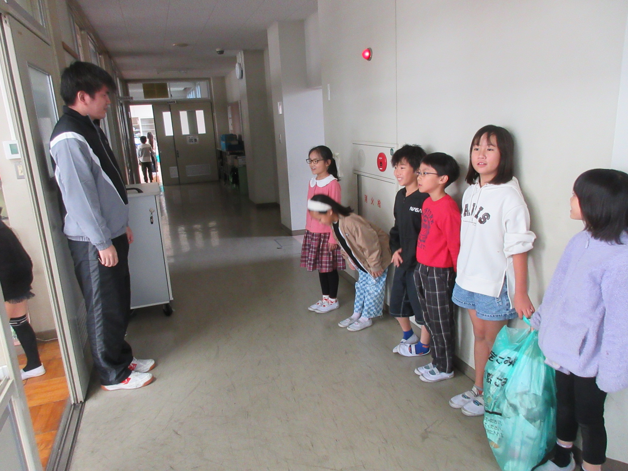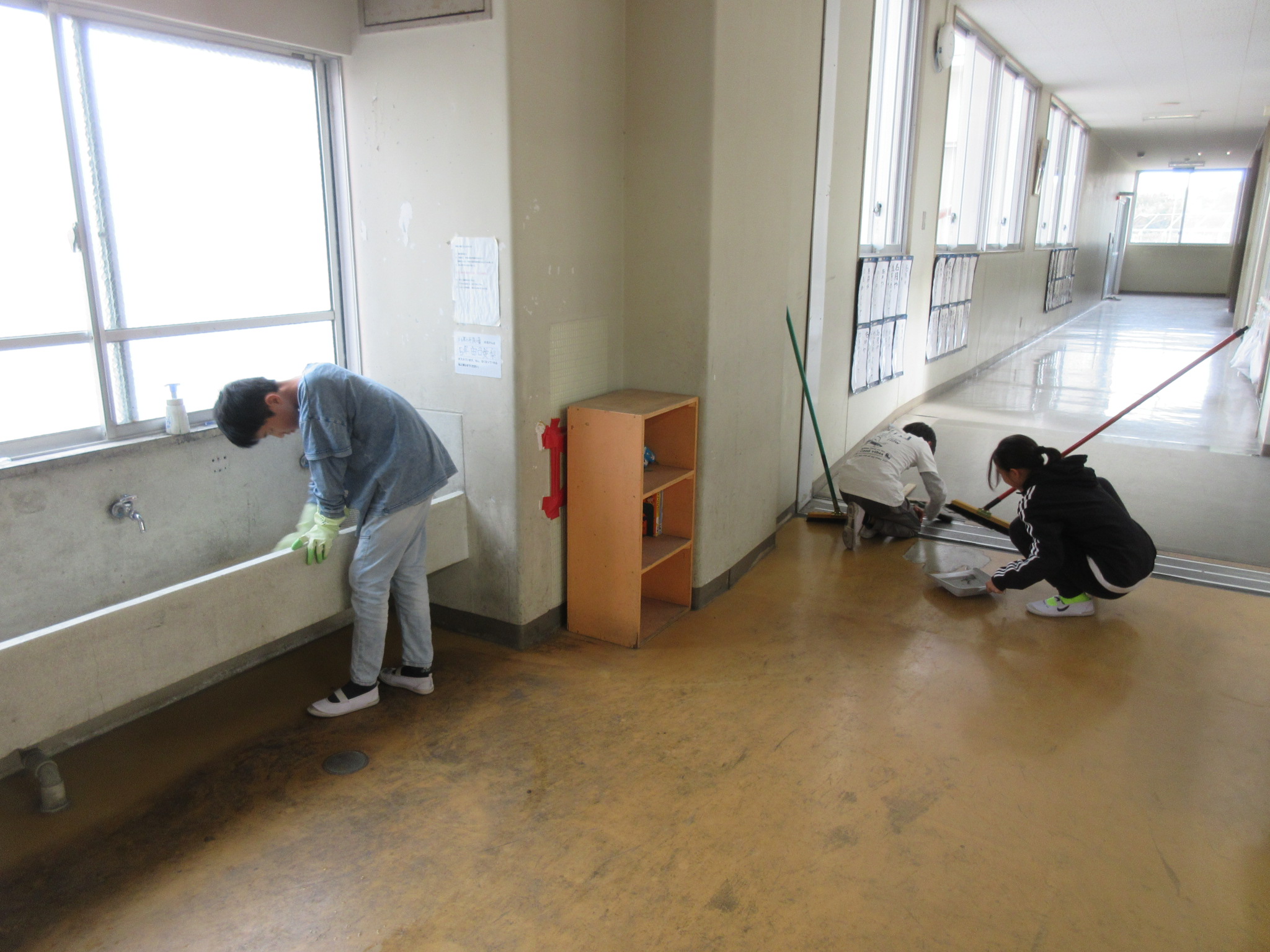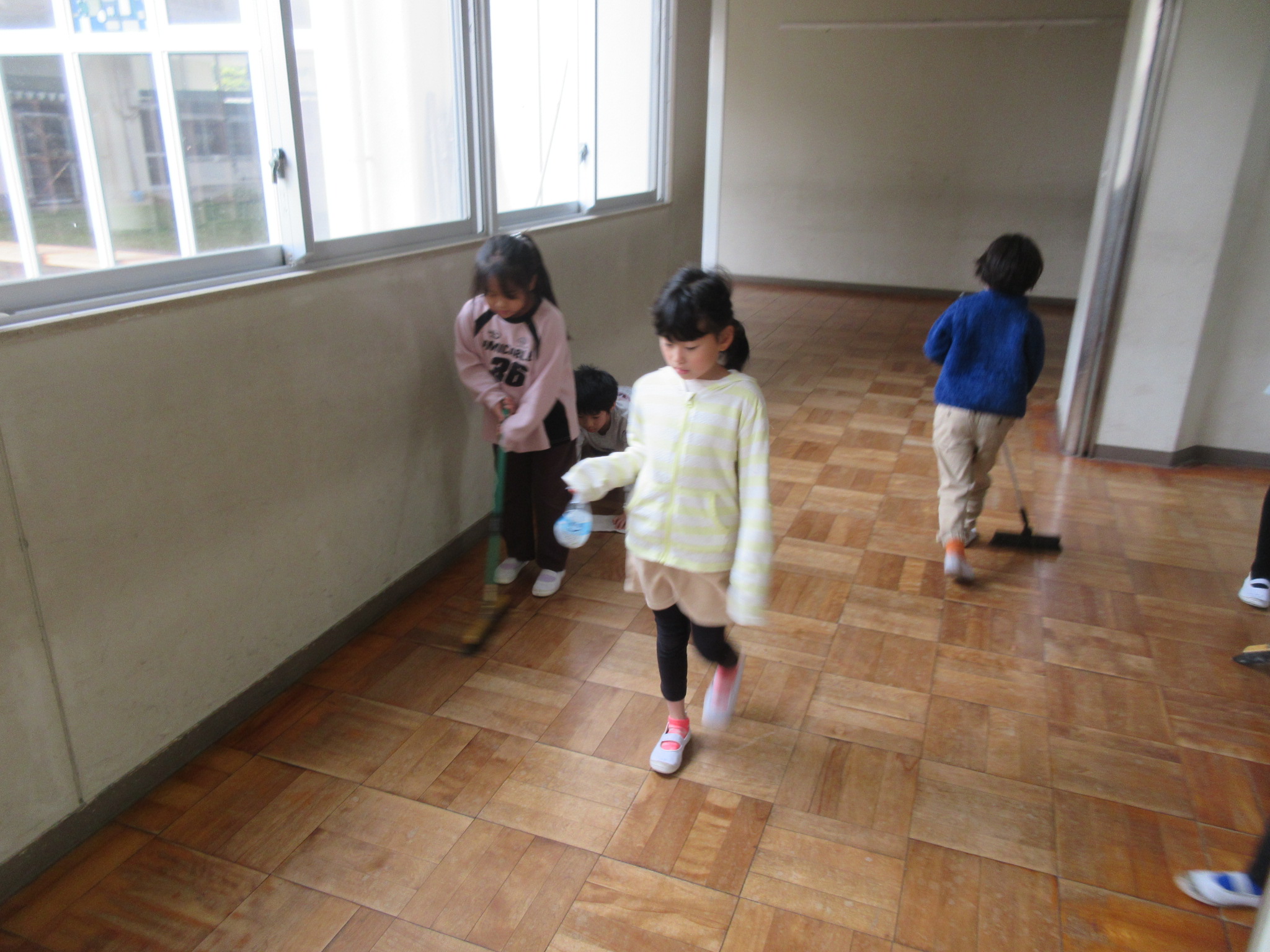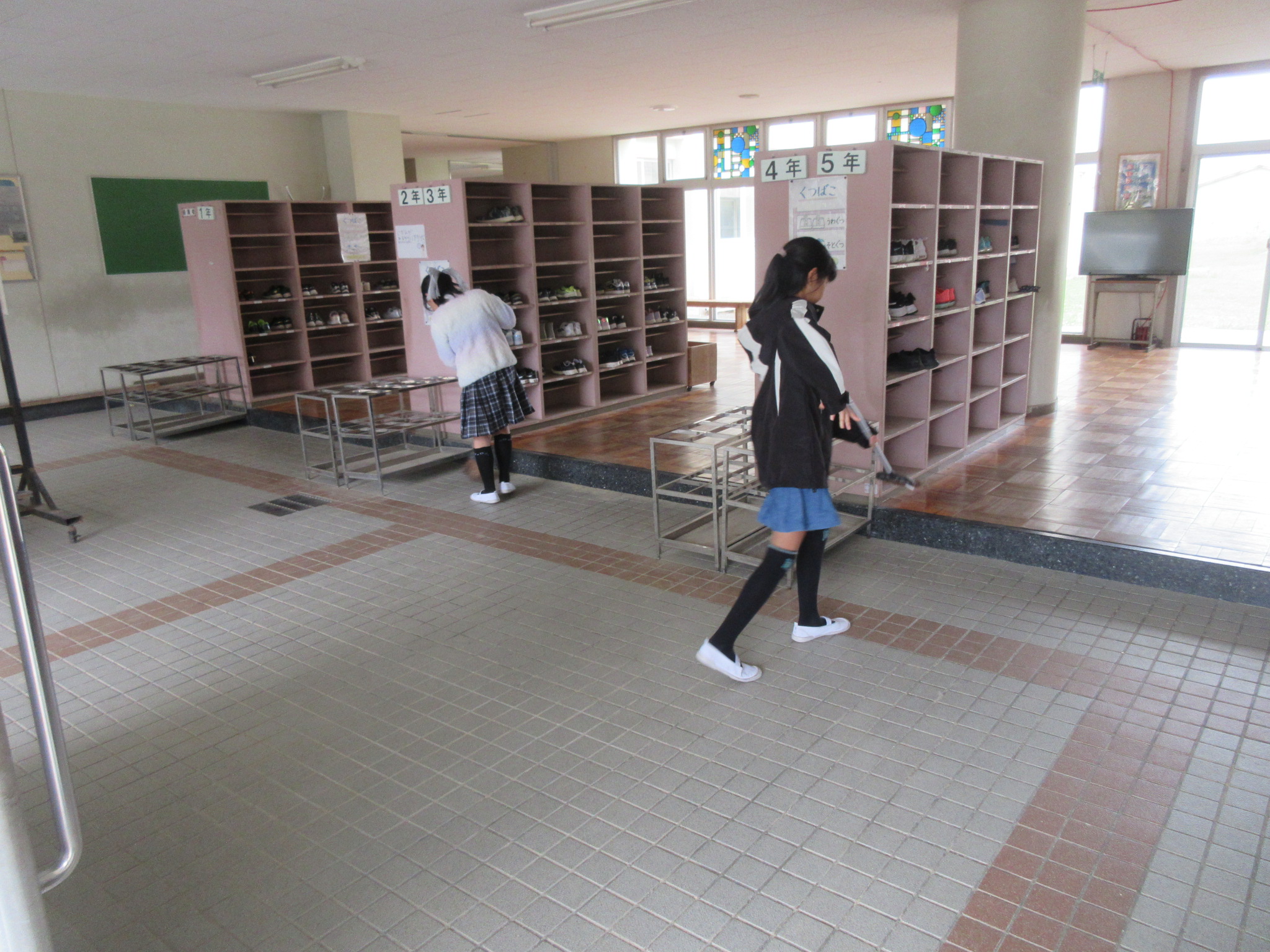 奥田小学校の掃除の時間は、「今から掃除を始めます」の挨拶で始まります。子どもたちは担当の掃除場所に分かれて、協力しながら清掃活動を行います。