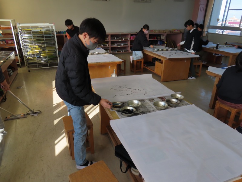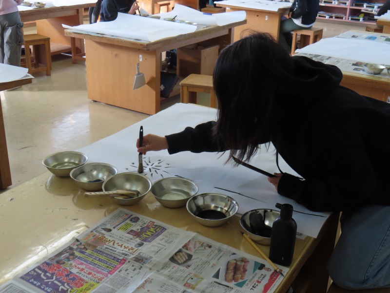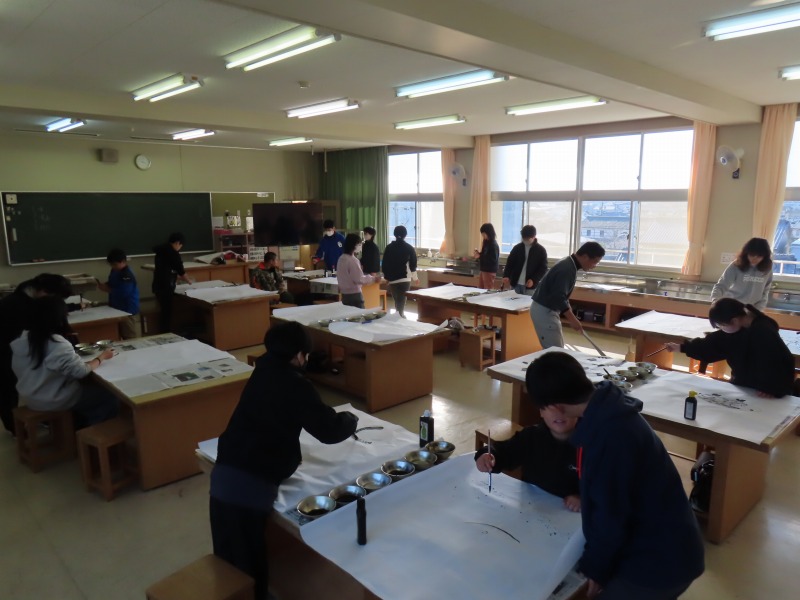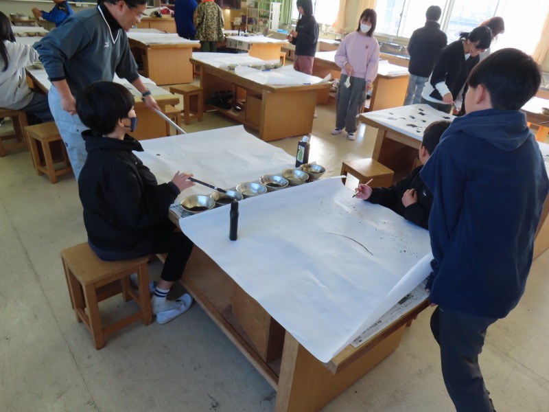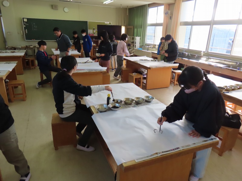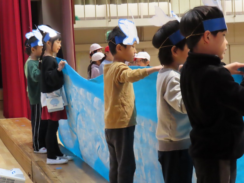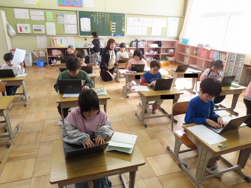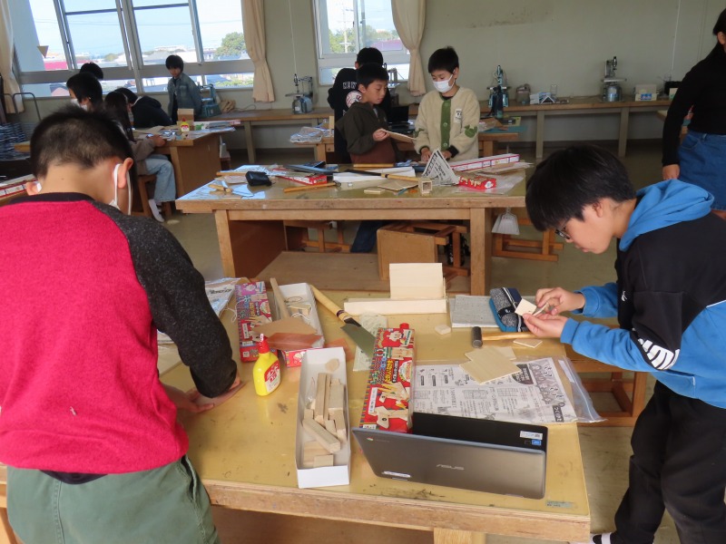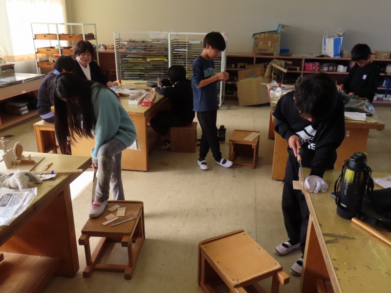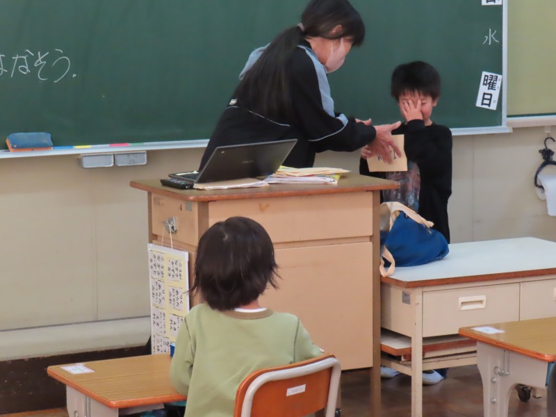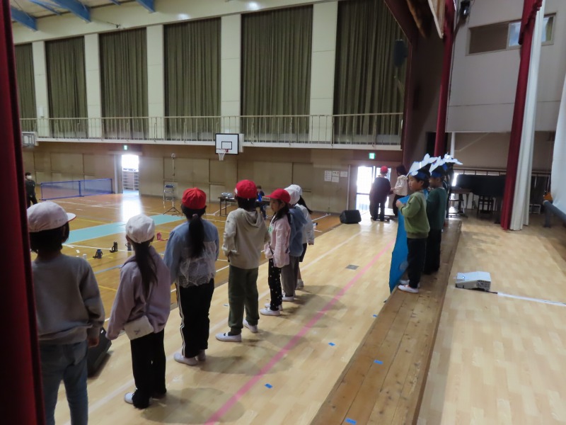 学習発表会に向けての練習に熱が入ります、まだ声も小さめですが、徐々に完成に近づけてくれることでしょう。6年生は図工で大きな和紙に墨で絵をかいています。4年生は金づちやのこぎりを使って木材を使った作品に挑戦しています。1年生は外国語活動で英語で先生とお話しできました。