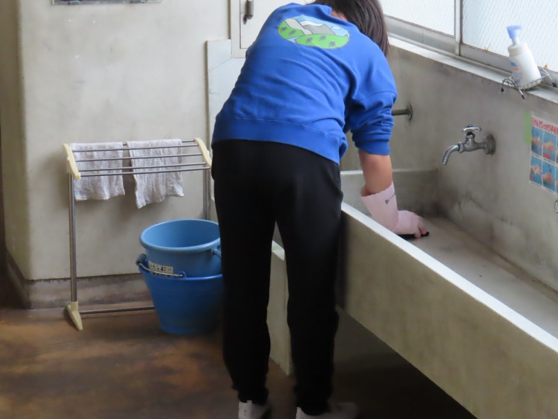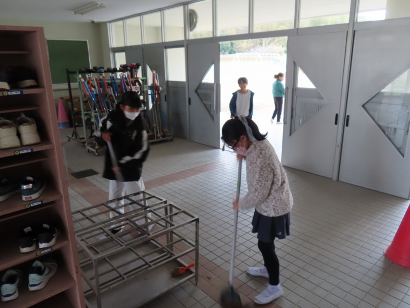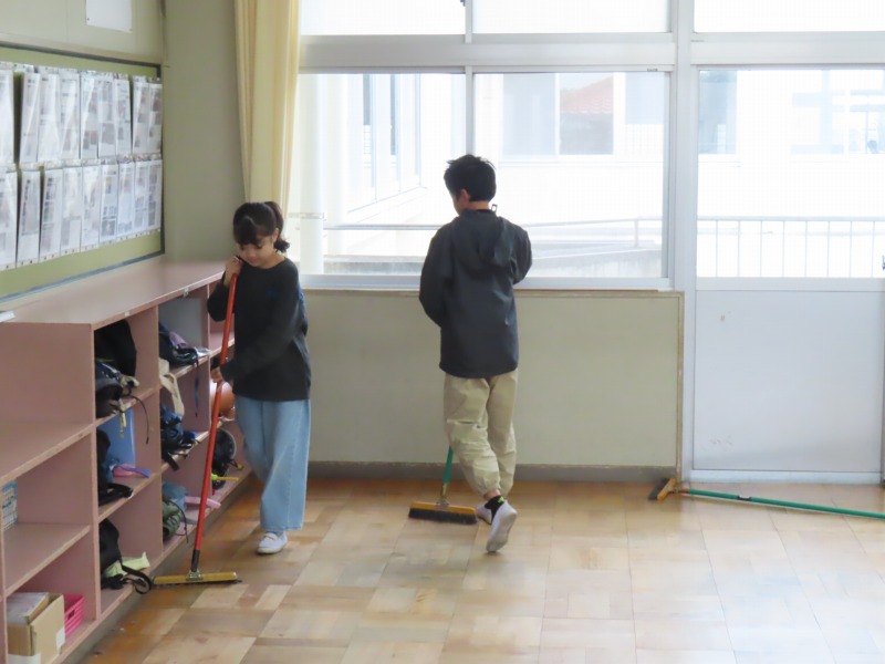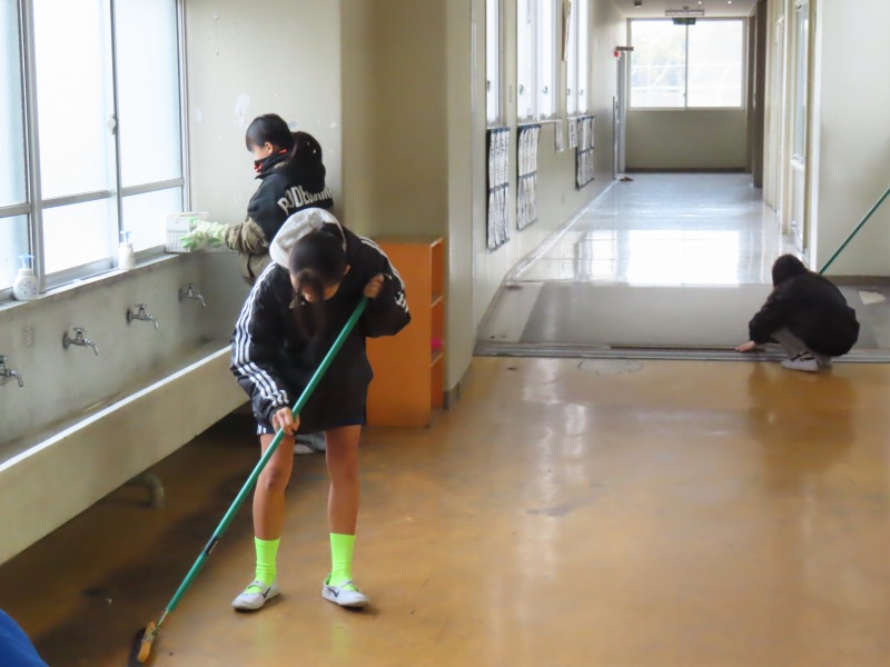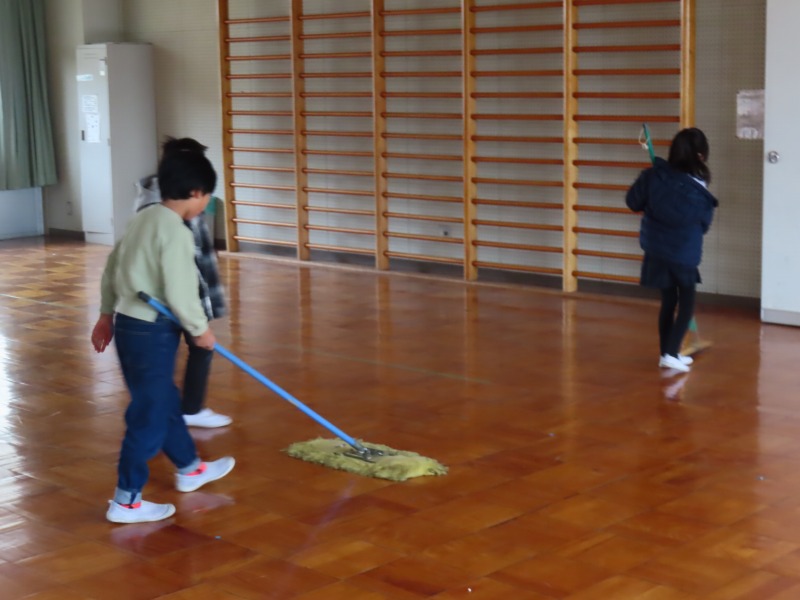 終業式後には大掃除を行いました。大掃除もみんなで協力してしっかりできました。