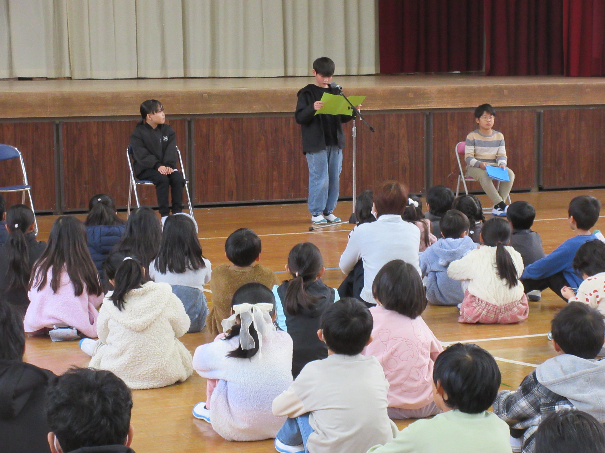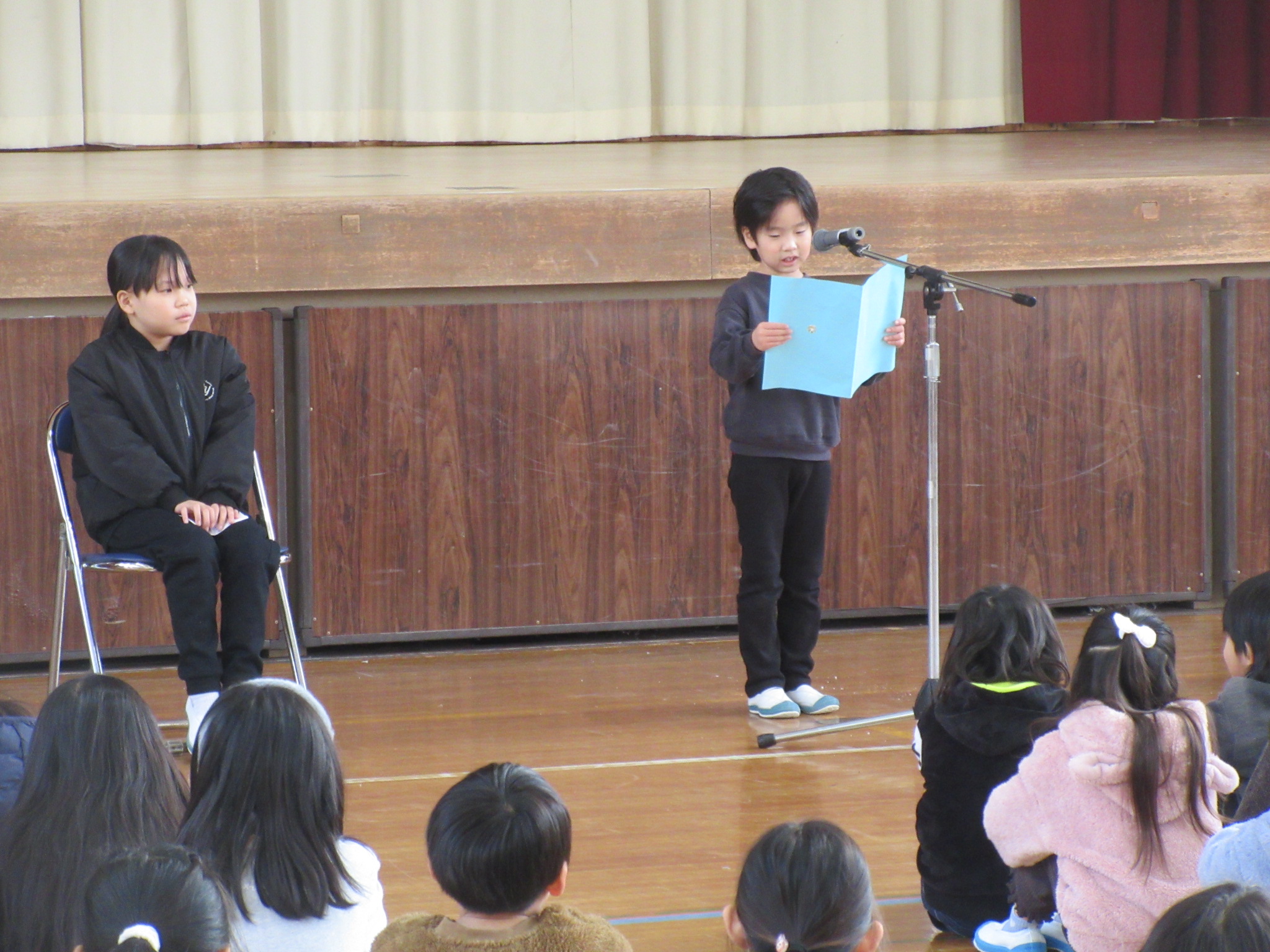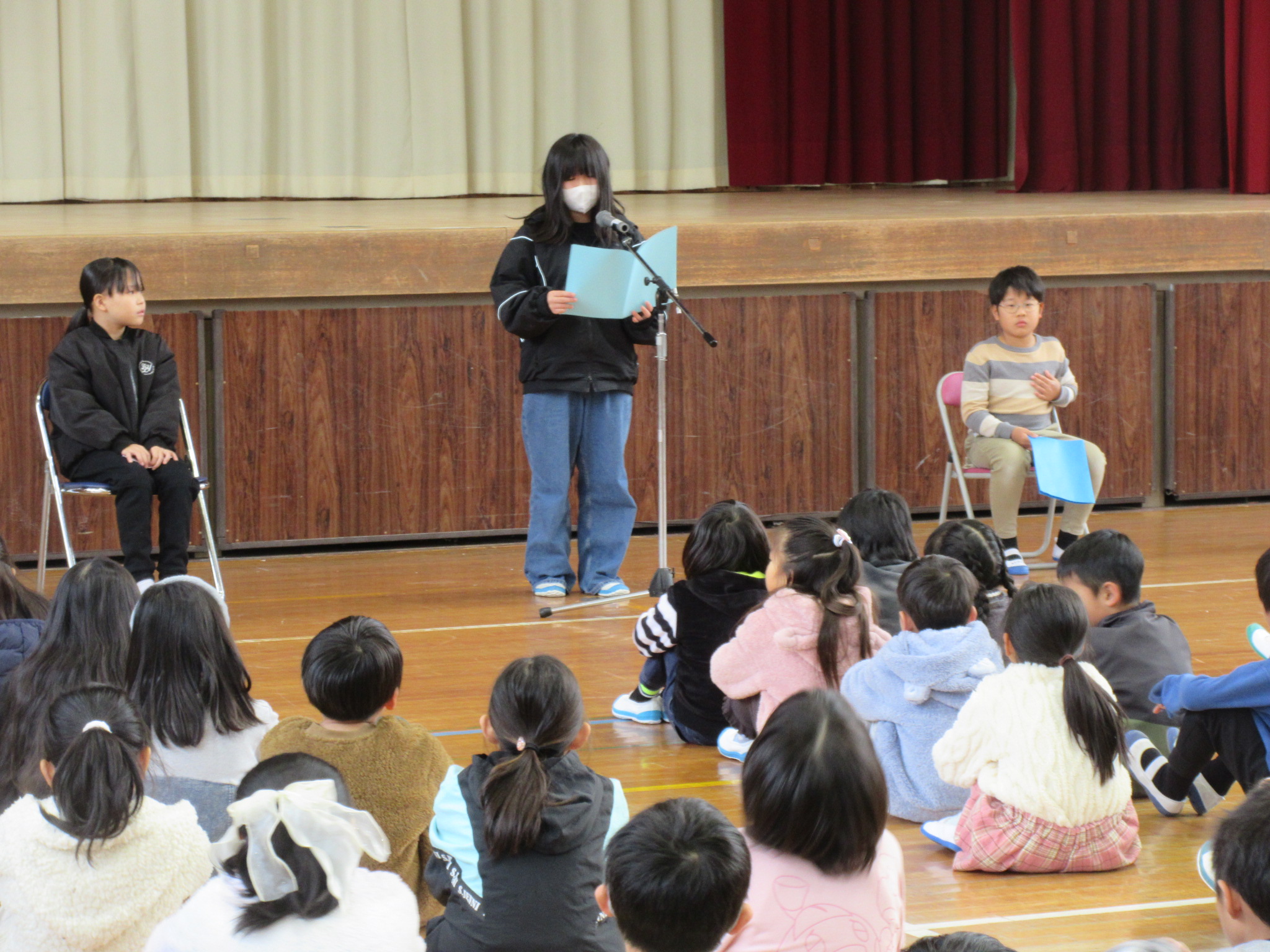 終業式の後には、各学年の代表が「2学期を振り返って」の作文を発表してくれました。どの学年も大変しっかり発表でできました。
