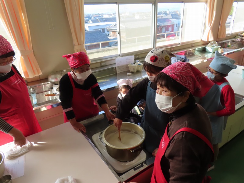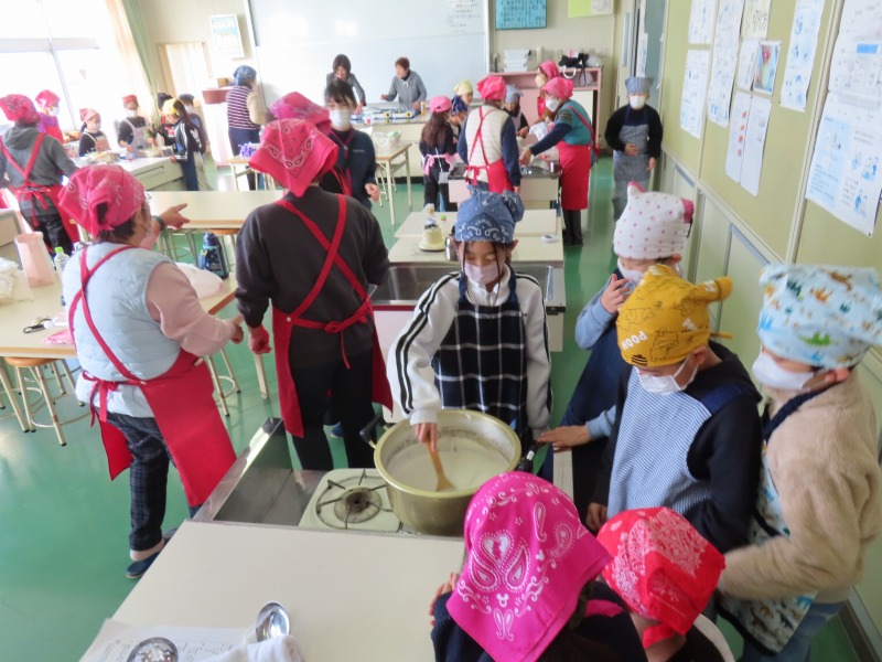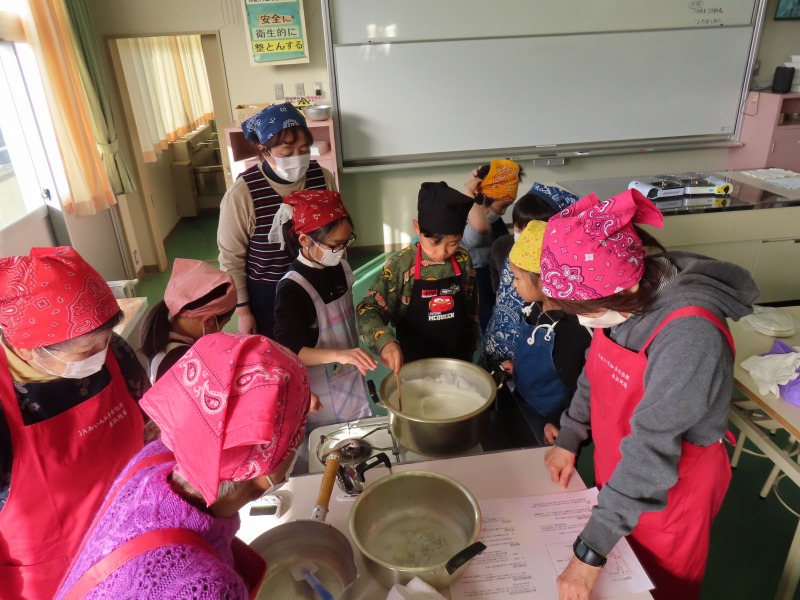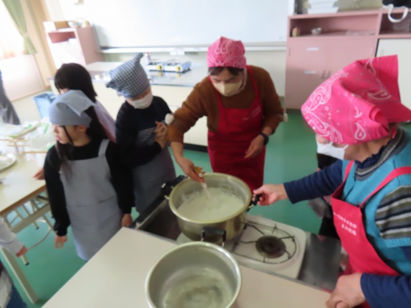 3年生は、JA女性部の皆さんの協力のもと、豆腐作りに挑戦しました。