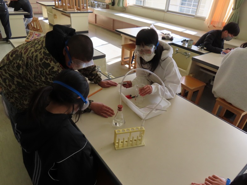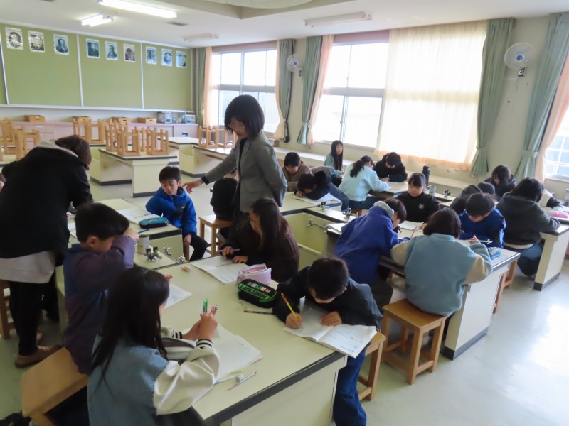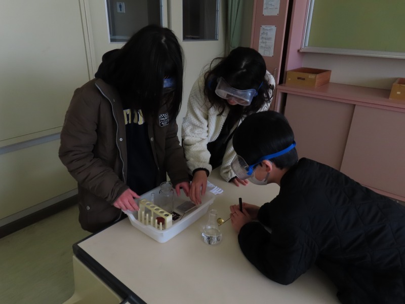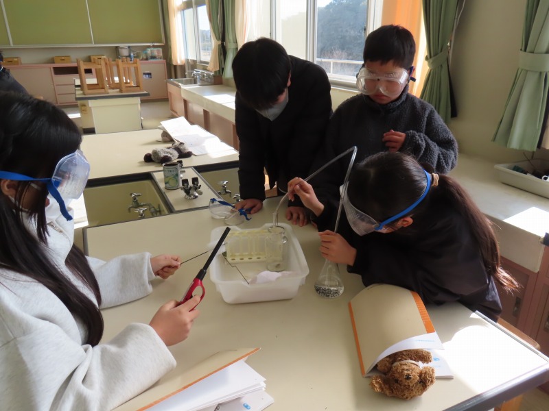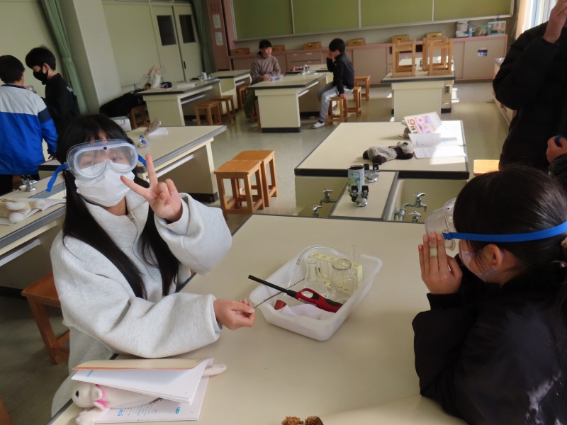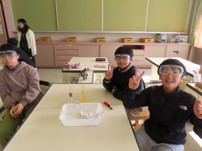 本日の授業の様子です。6年生は理科の実験をしていました。みんなめがねがお似合いです。