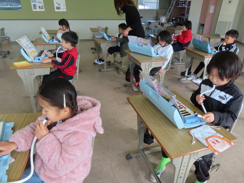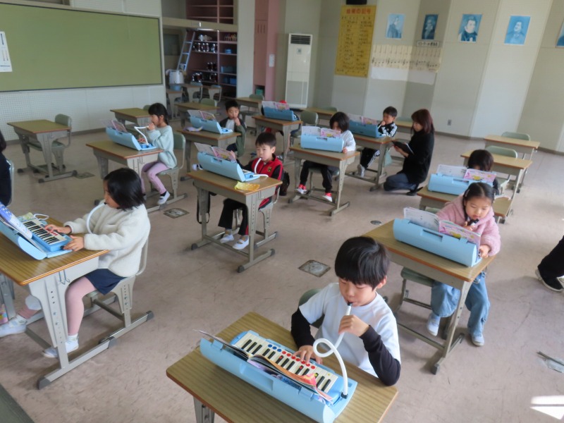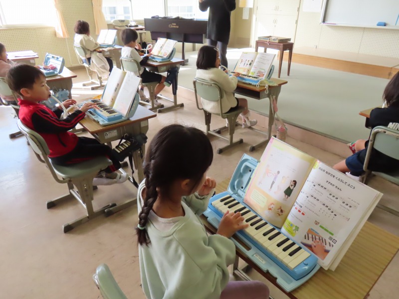 1年生の音楽です。みんな上手に演奏できていてびっくりです。
