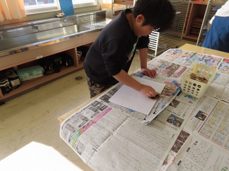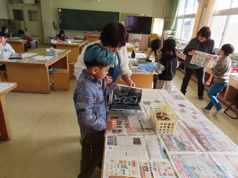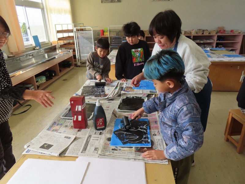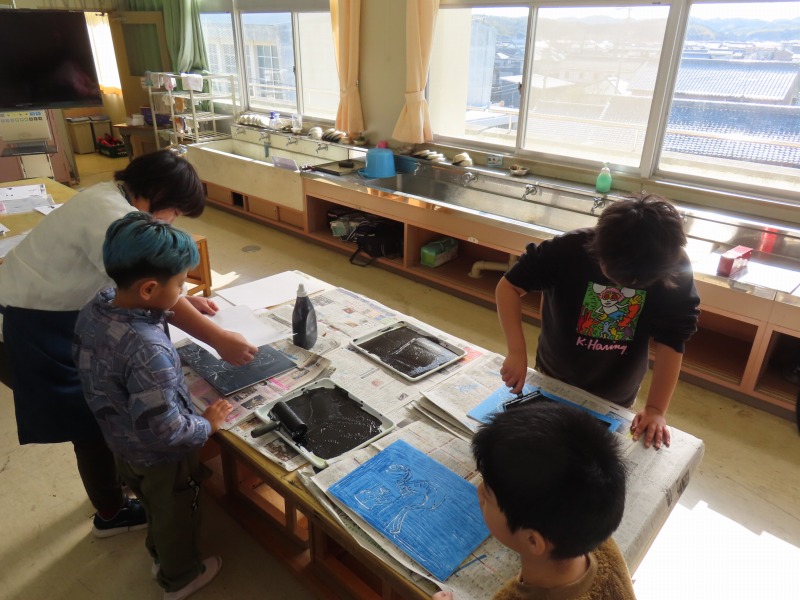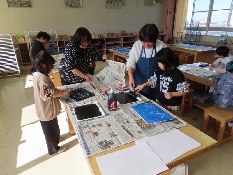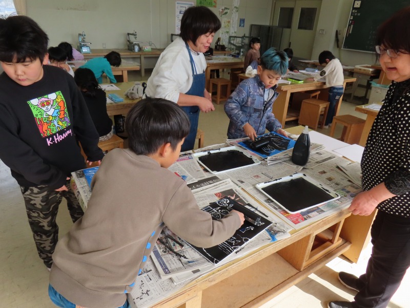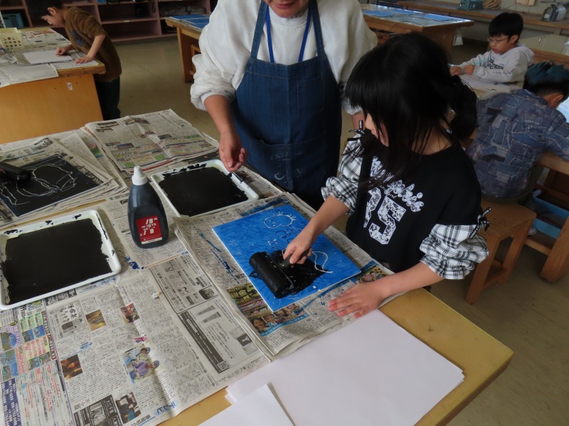 2年生は図工で版画に取り組んでいます。うまくできていました。