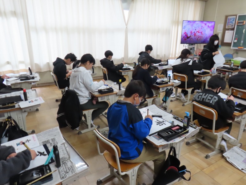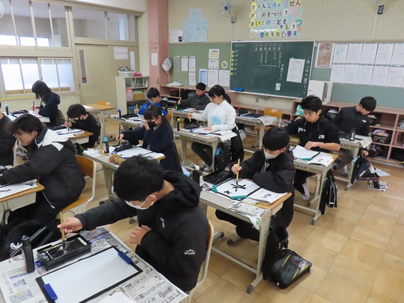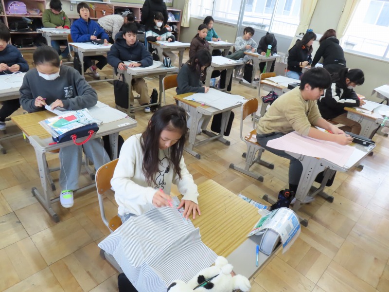 6年生は書写で「希望」の練習です。、5年生は家庭科でランチョンマットの製作に取り組んでいました。