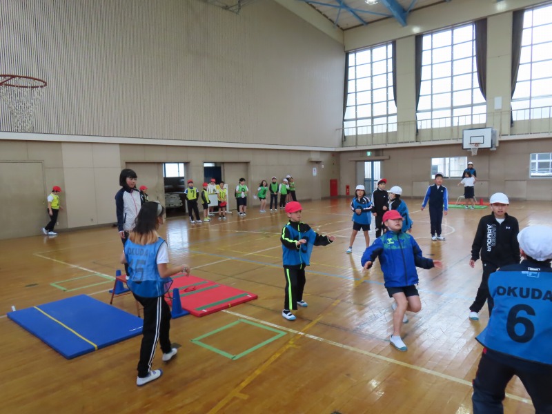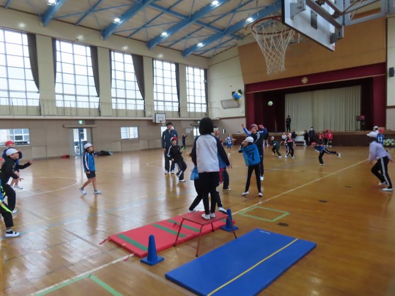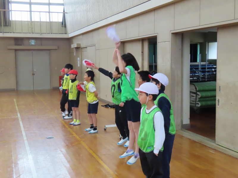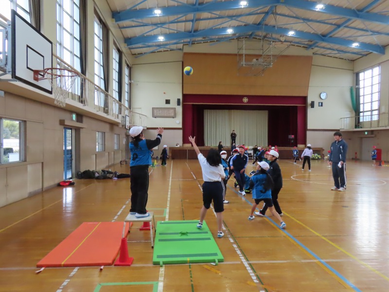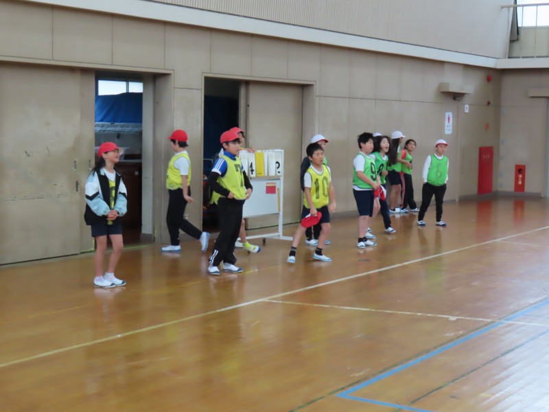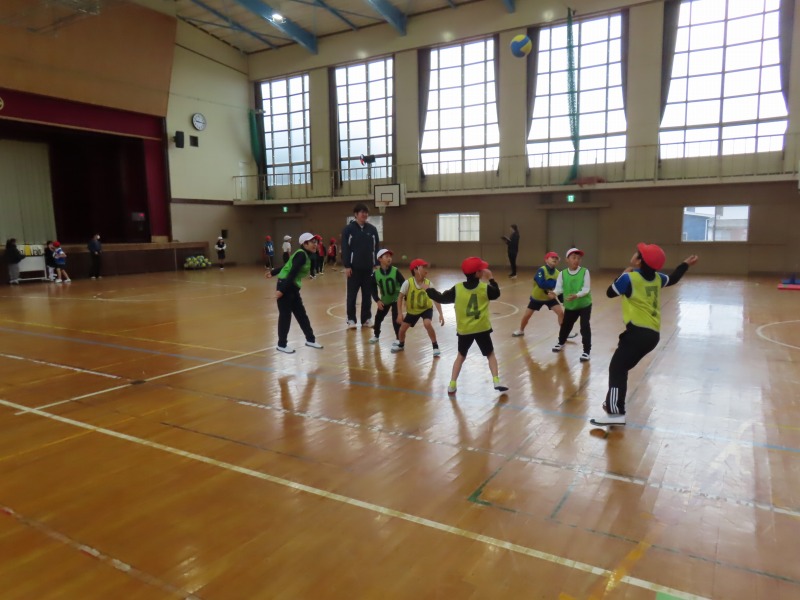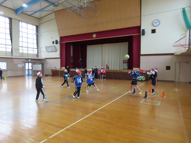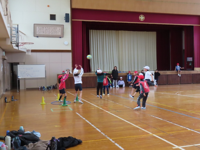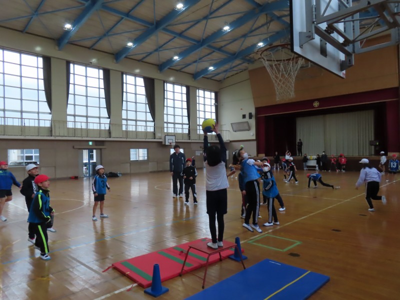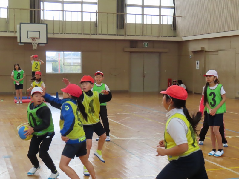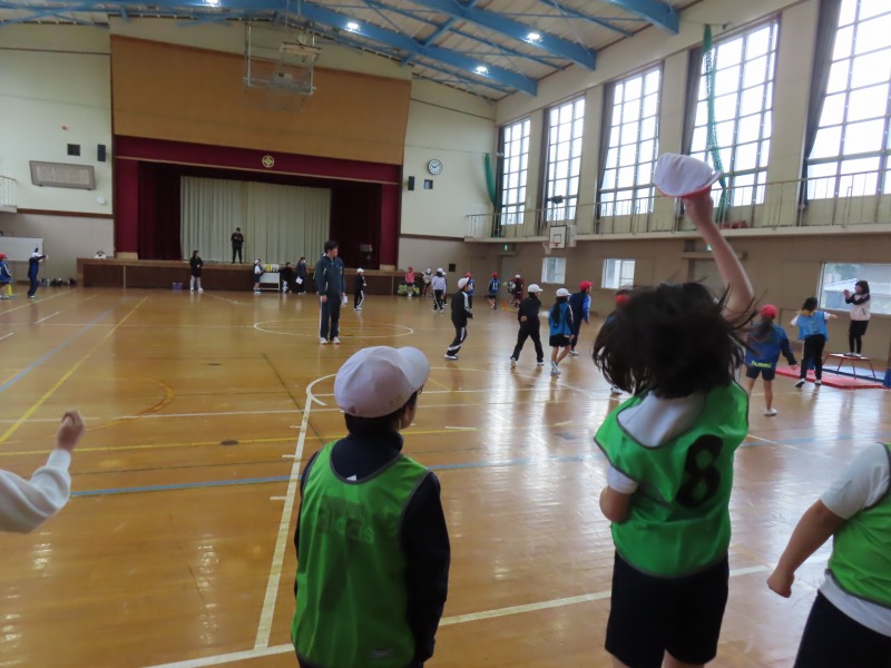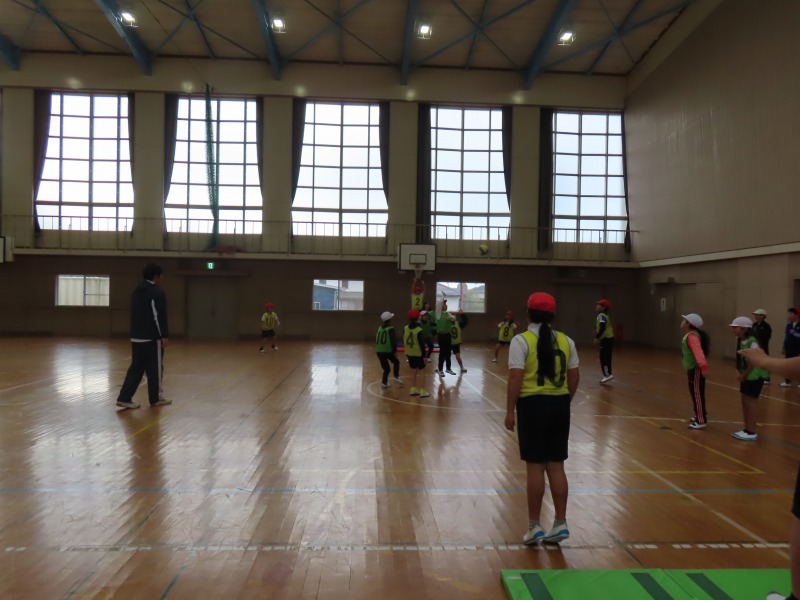 3・4年生は体育でバスケって型の球技です。観戦している児童もとても楽しく応援していました。とても良い雰囲気でした。