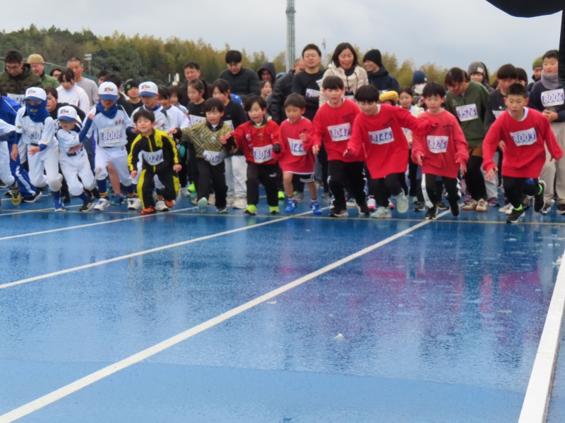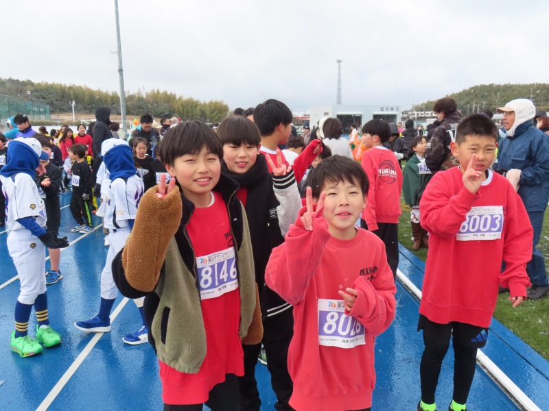 今日は陸上競技場で美浜タウンマラソンが開催され、多くの子どもたちが参加していました。雪がちらつく寒い日でしたが、みんながんばりました。