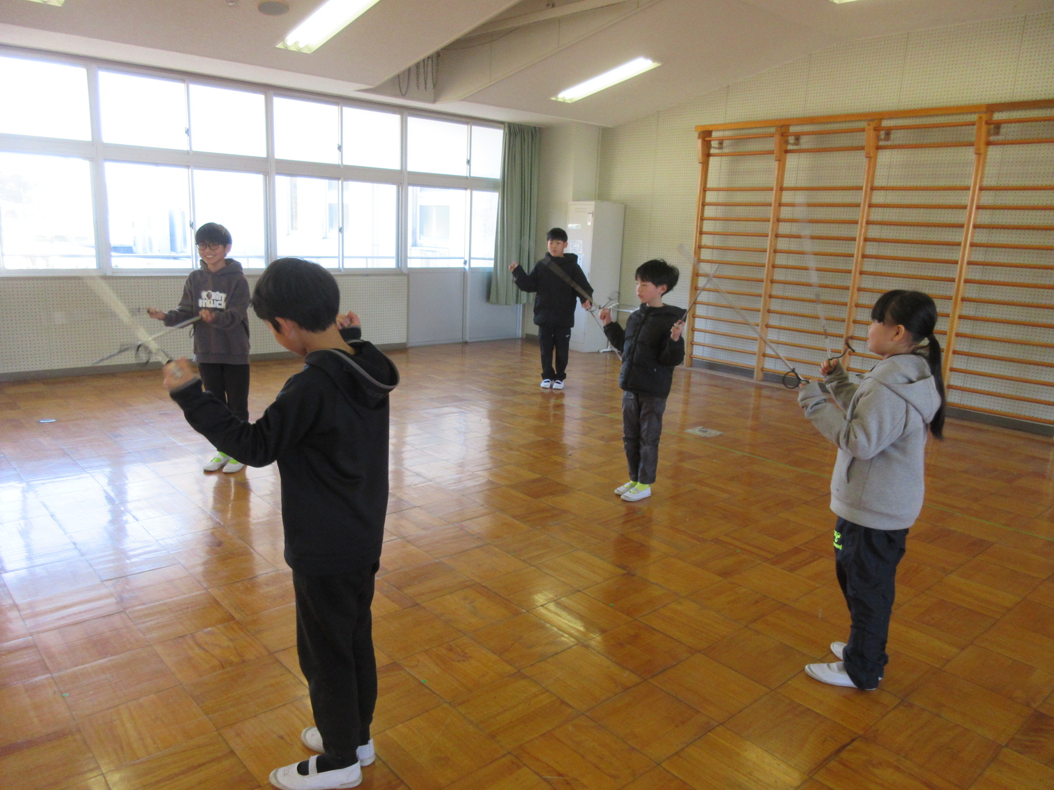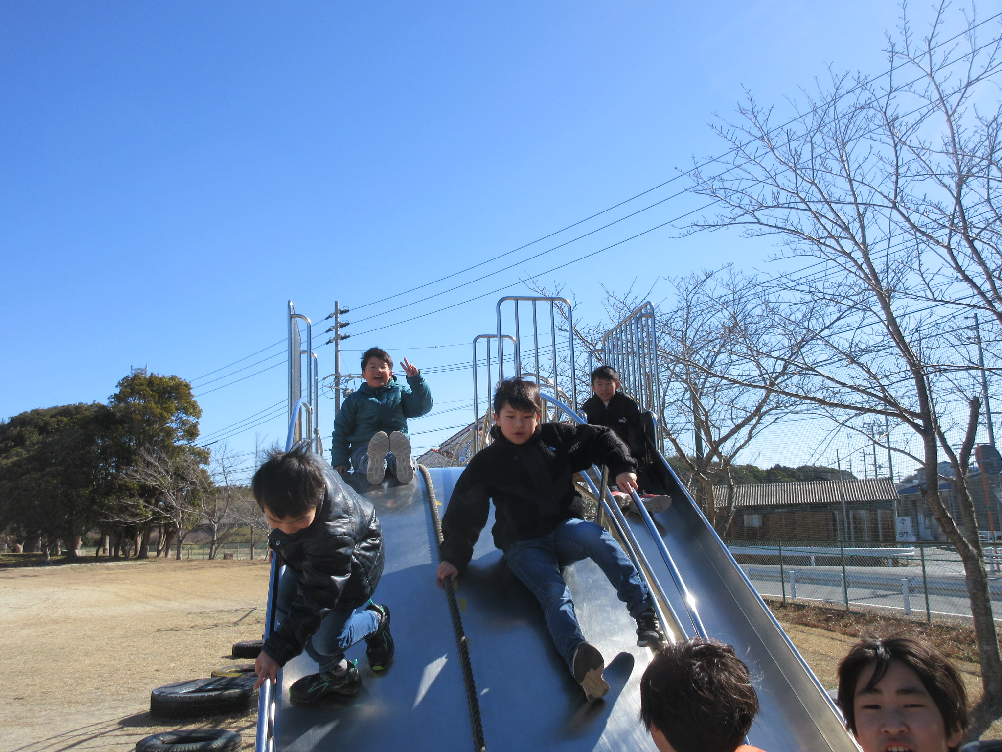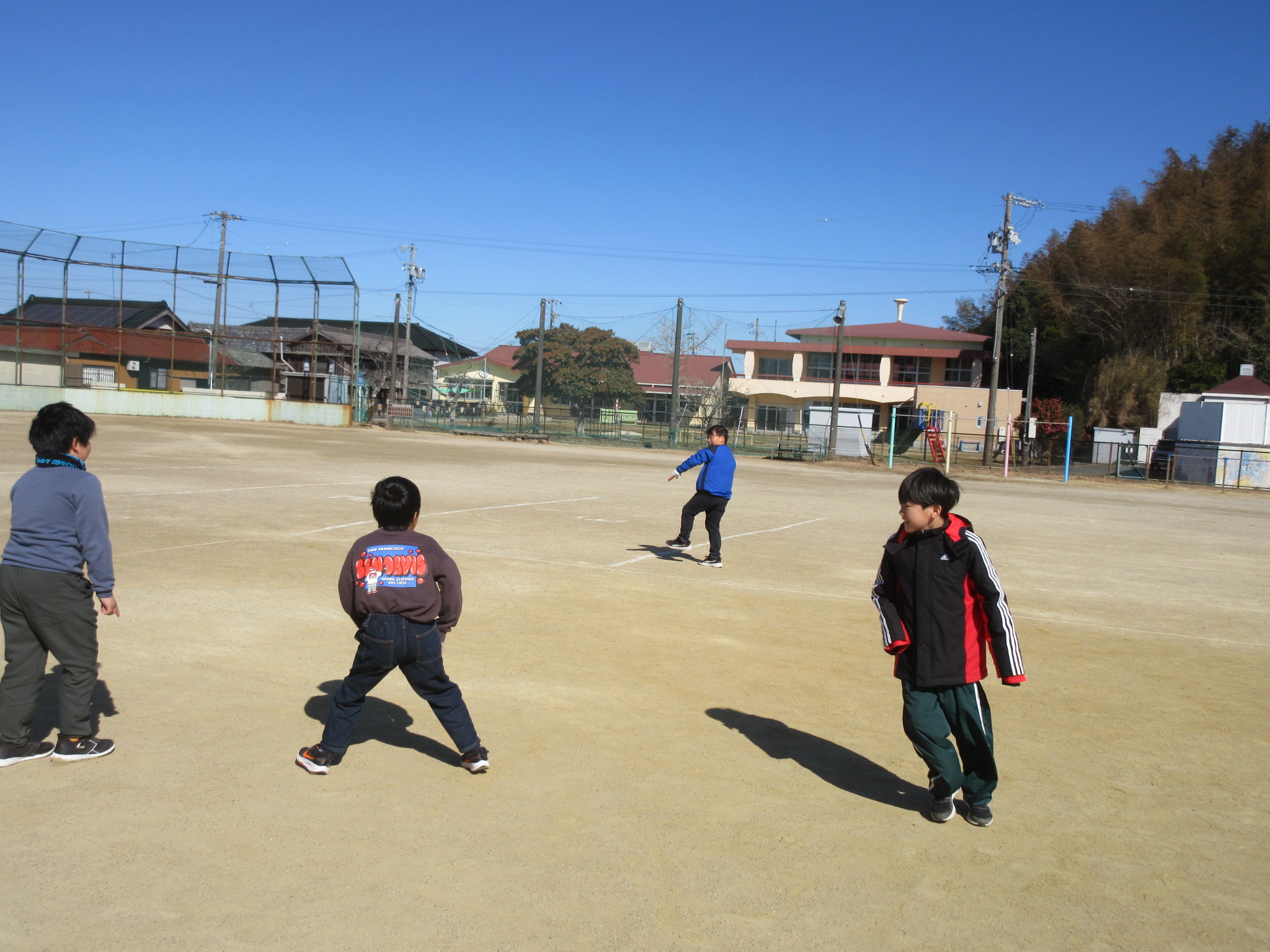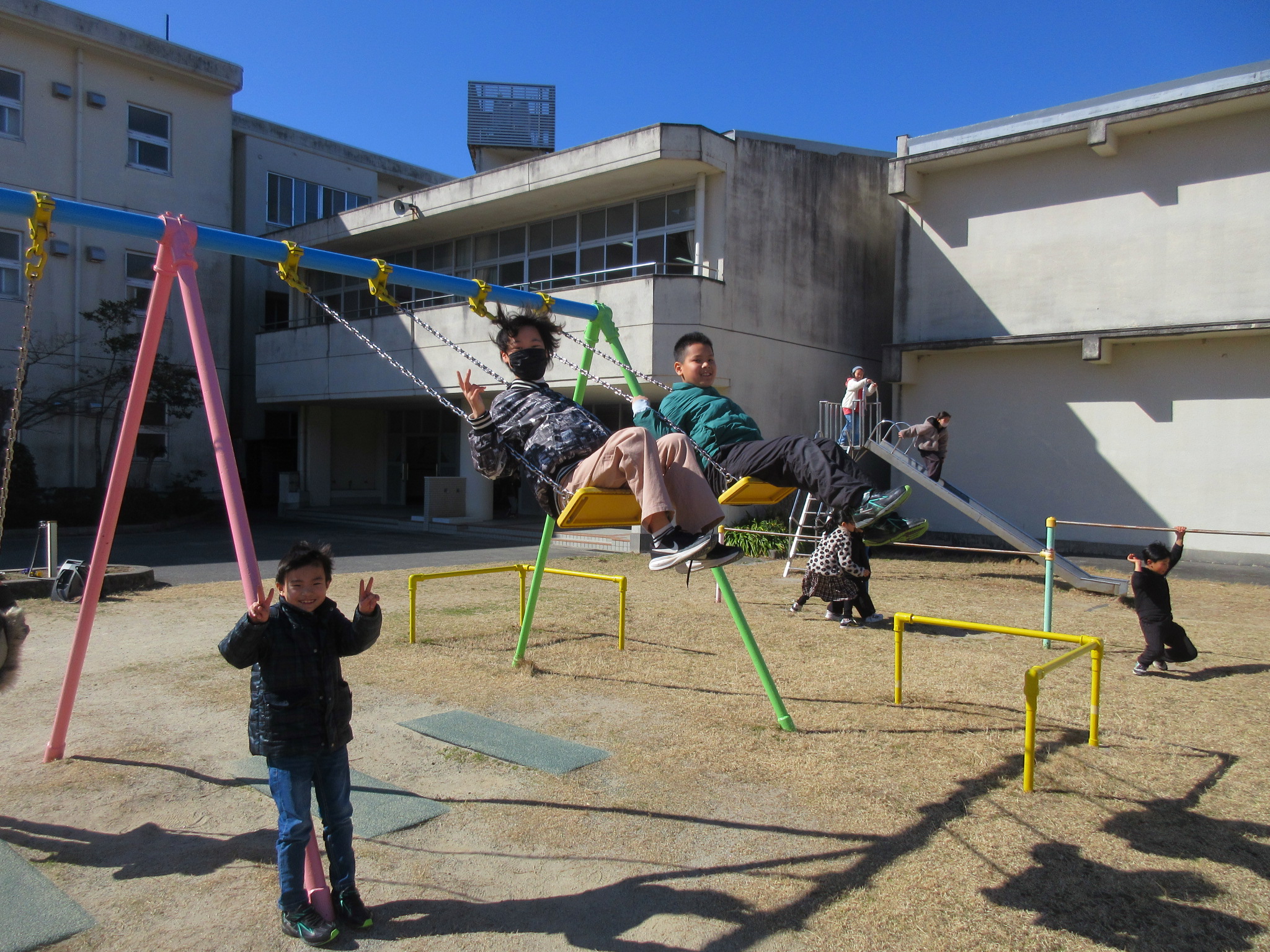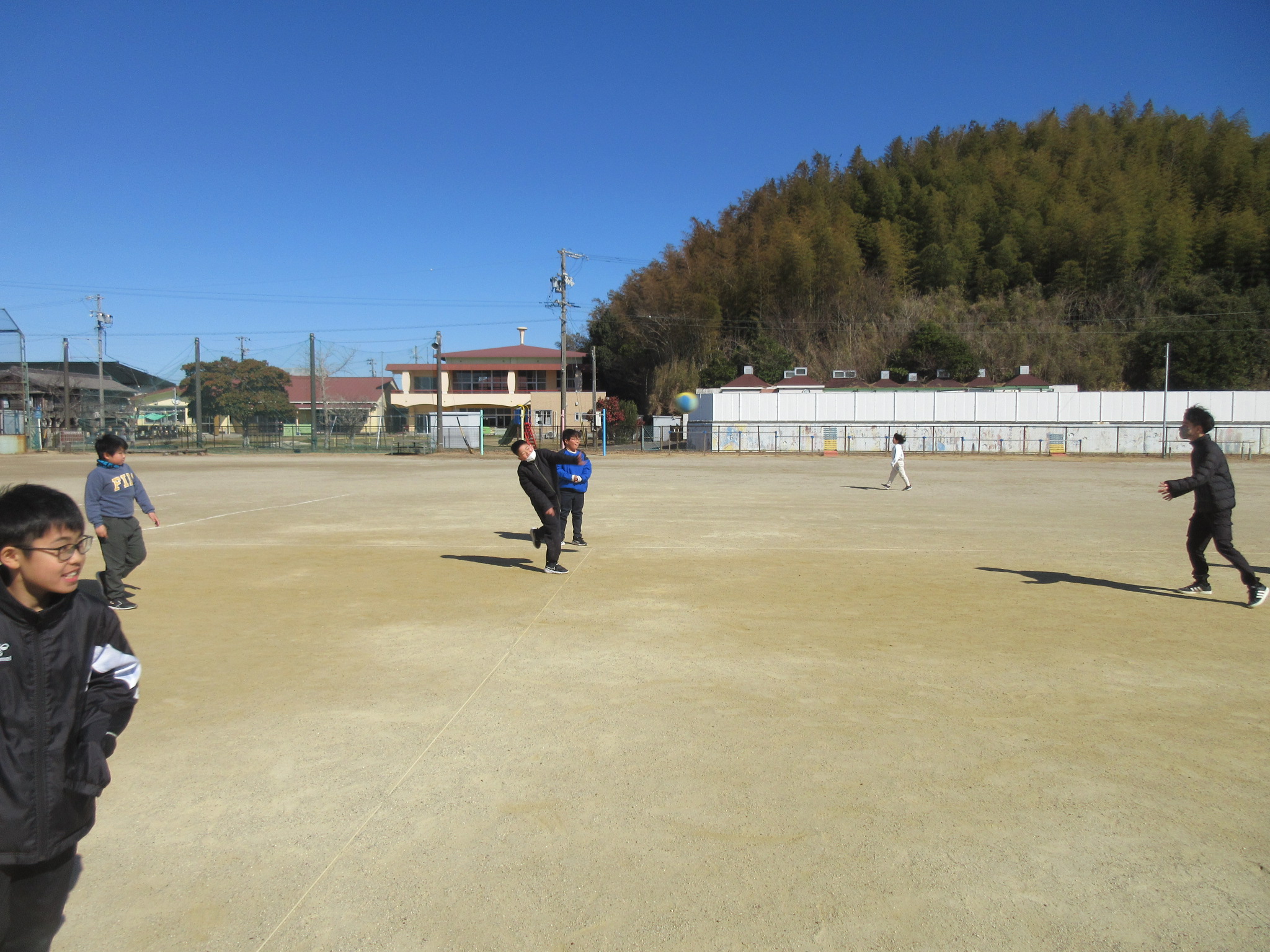 本日の大放課の様子です。4年生は来年度の野外教育活動に向けて、交代でトーチの練習をしています。運動場では、遊具で遊んだり、ドッジボールをしたりと、子どもたちが笑顔いっぱいで遊んでいました。