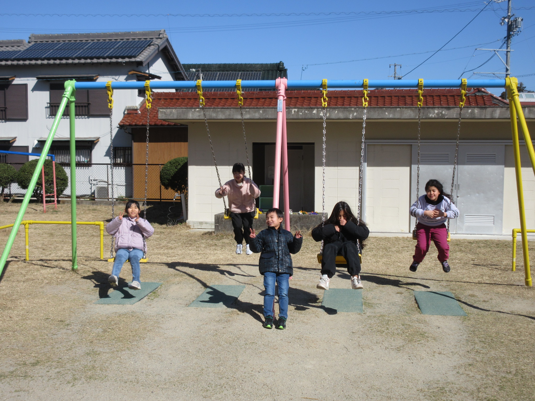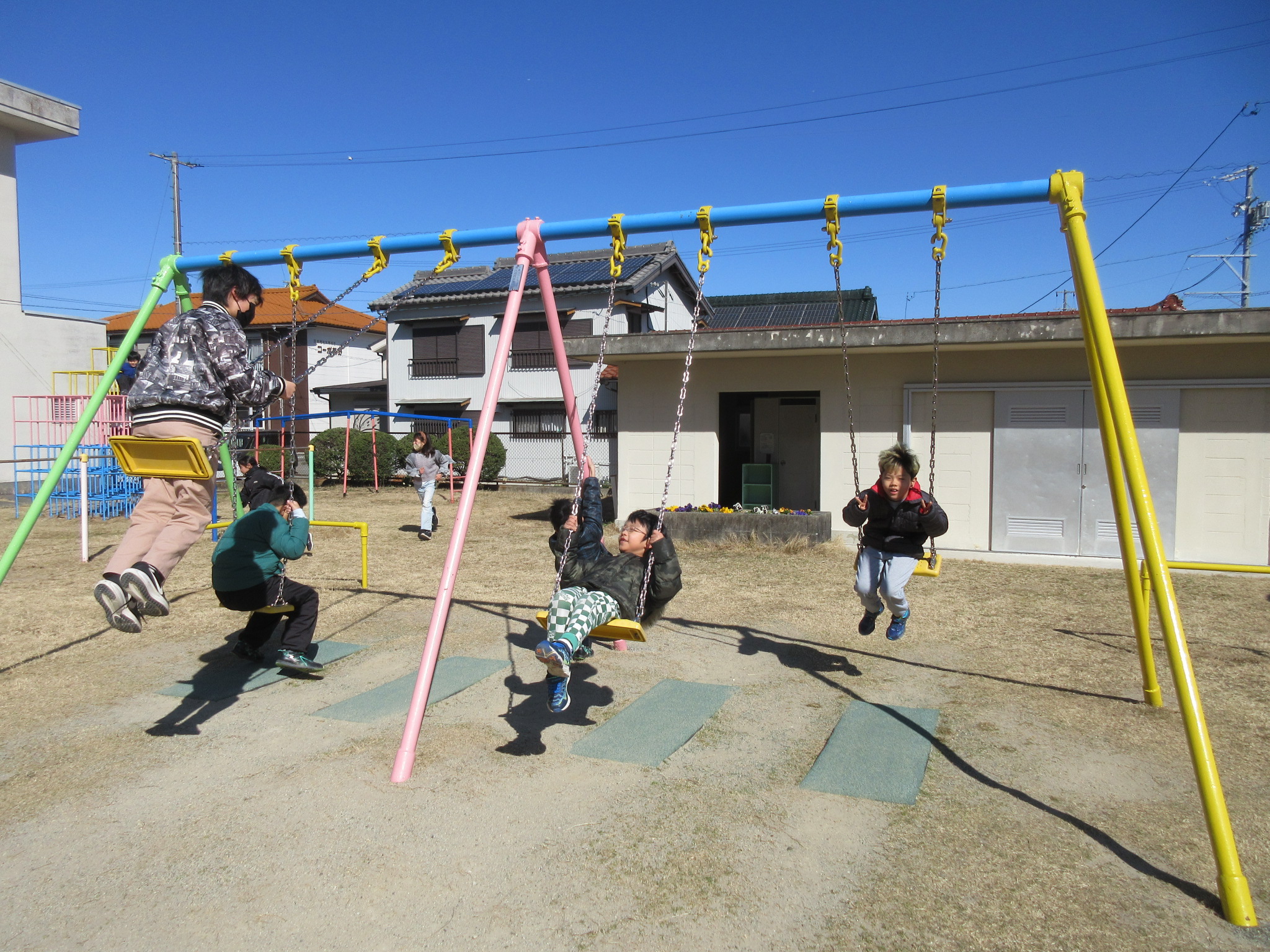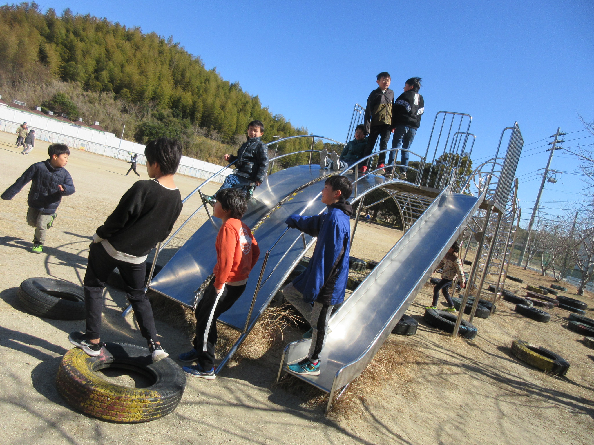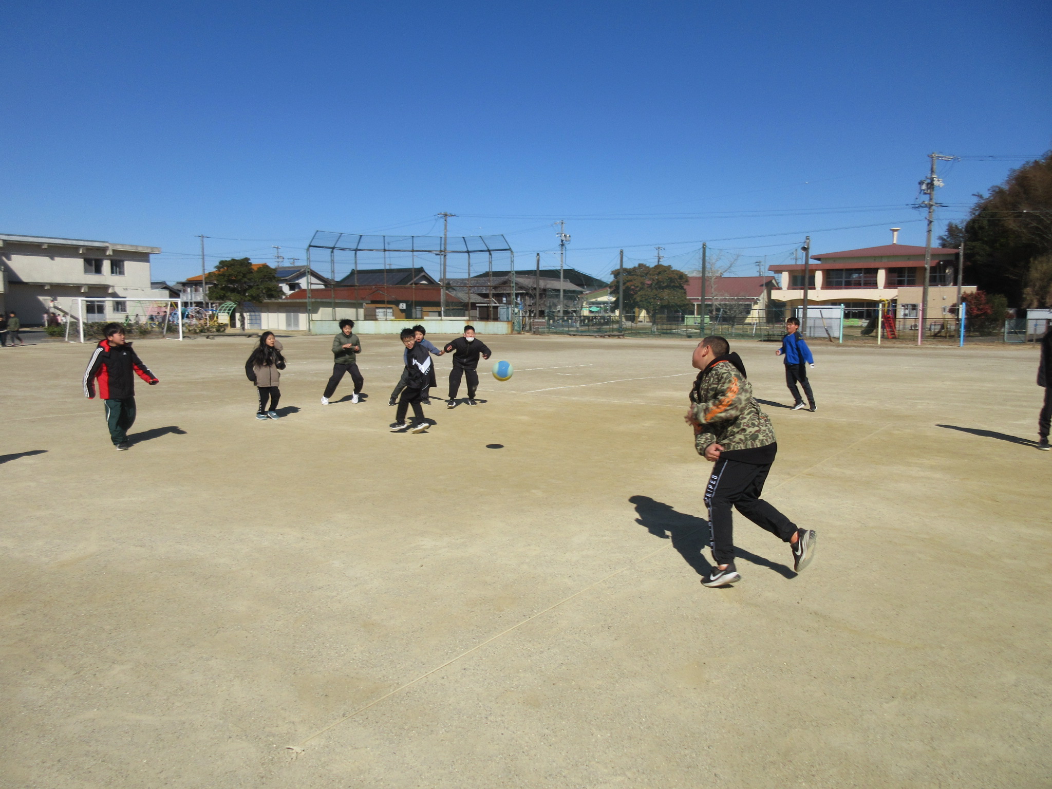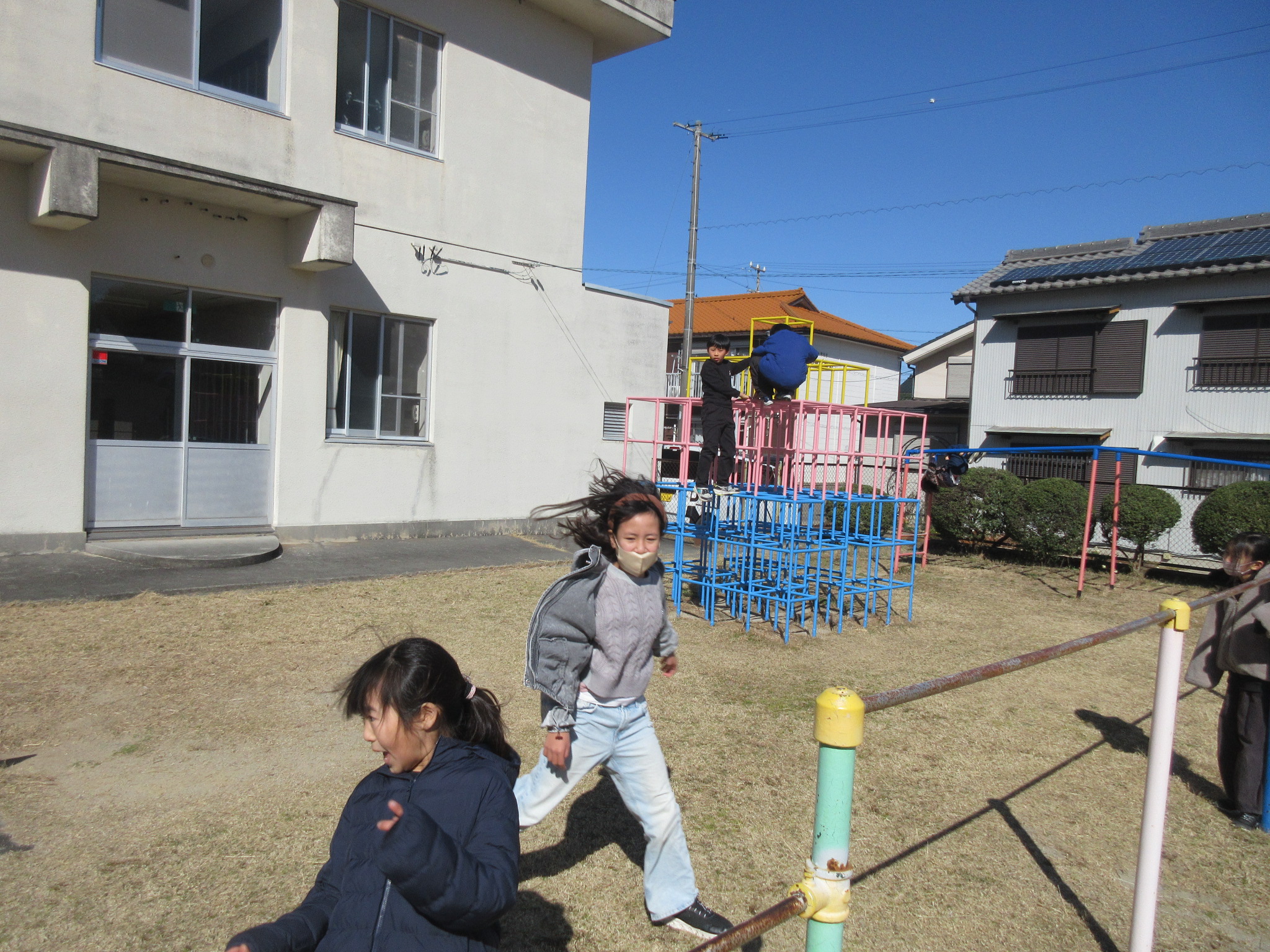 本日の大放課の様子です。4年生は来年度の野外教育活動に向けて、交代でトーチの練習をしています。運動場では、遊具で遊んだり、ドッジボールをしたりと、子どもたちが笑顔いっぱいで遊んでいました。