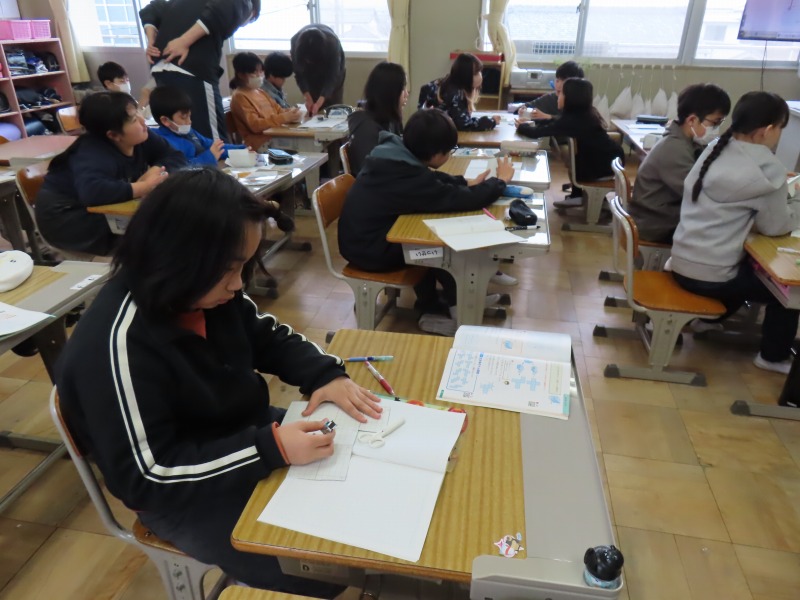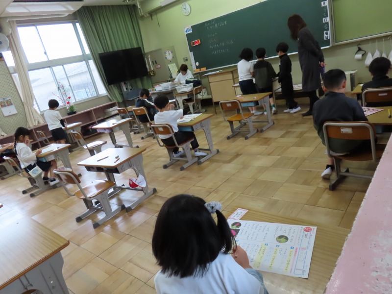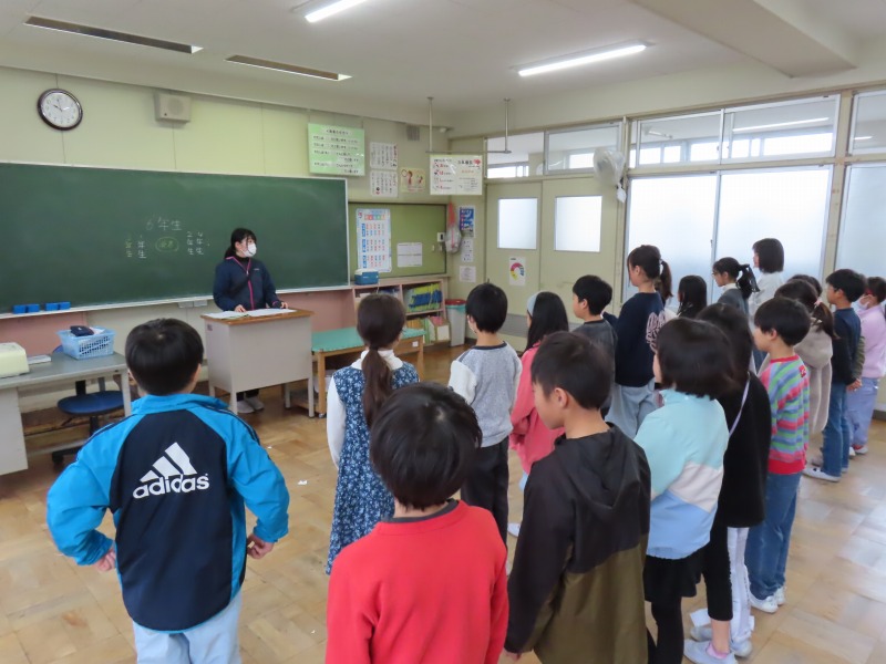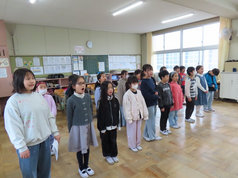 今日の授業の様子です。6年生は卒業式の歌の練習をしていました。以前よりも上手になっていました。少しずつ本番に向け上手に歌えるようにしたいですね。3年生は「6年生を送る会」に向けて何度も練習をしていました。とても元気よく歌えていました。5年生は図工や英語、4年生は算数、2年生は体育、1年生は算数の様子です。