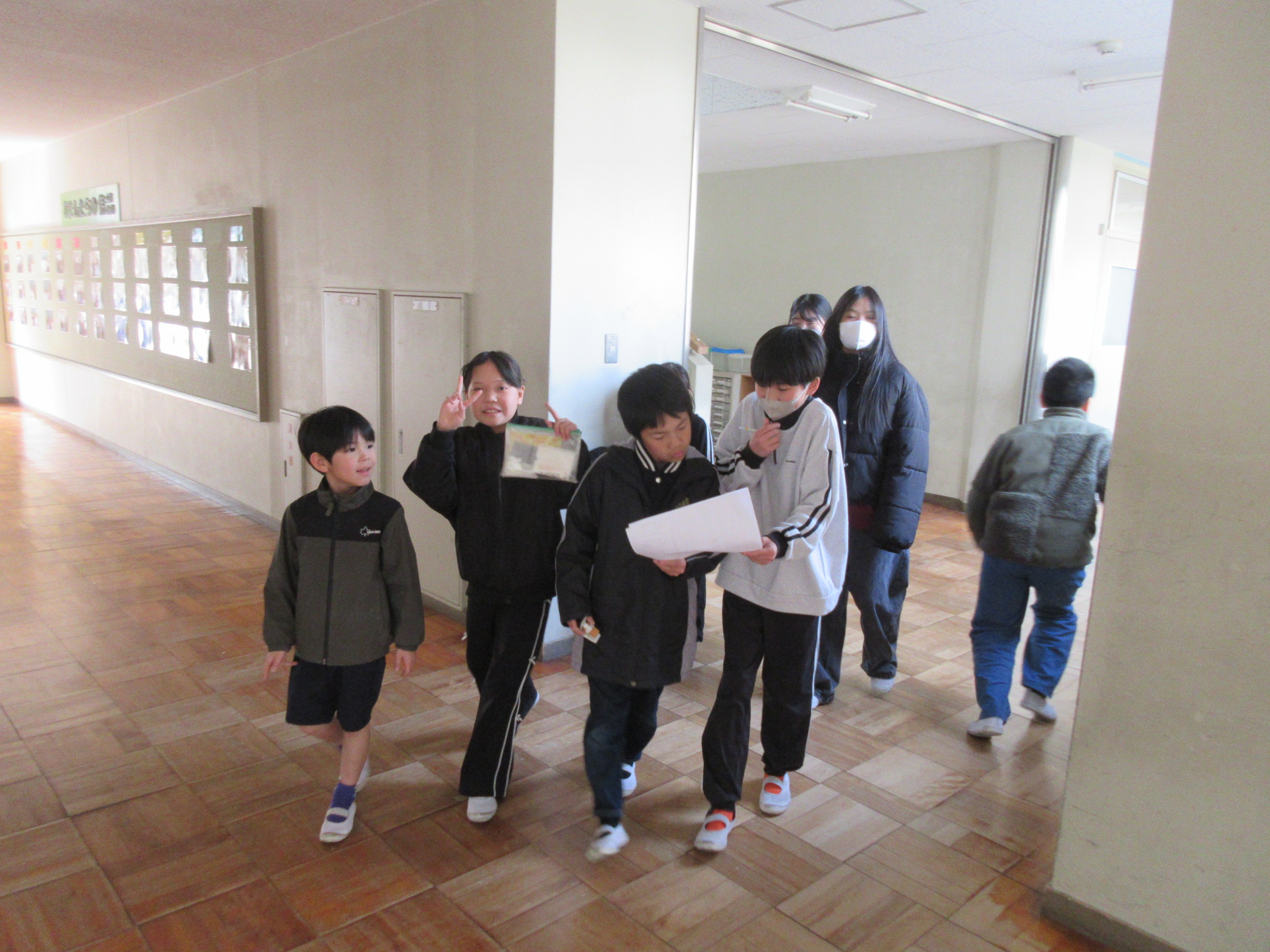 大放課に、児童会主催の仲良しタイムがありました。今日は校内に隠された謎を解くゲームです。ペアの子と一緒に楽しく過ごせました。
