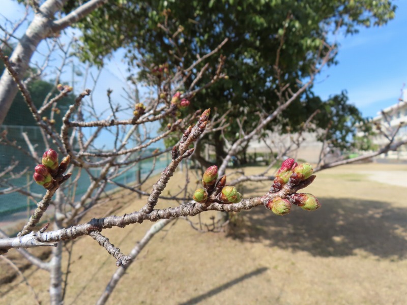運動場の桜のつぼみも大きくなってきました。たんぽぽも咲いています。