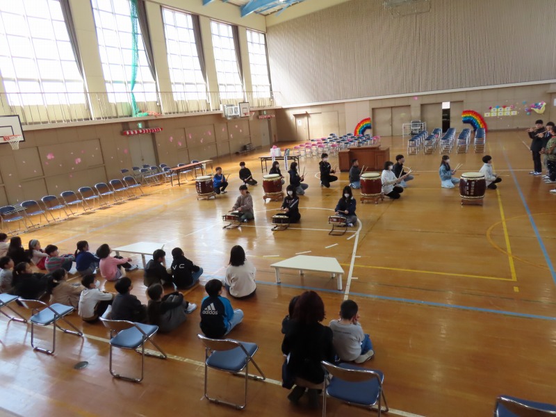 今年度の授業も残りわずかとなりました。まとめの学習をしたり、お楽しみ会の企画をしたり、子供たちの成長が感じられる時期となりました。6年生は卒業まであとわずかとなり、今日は3年生に和太鼓の指導をしてくれました。