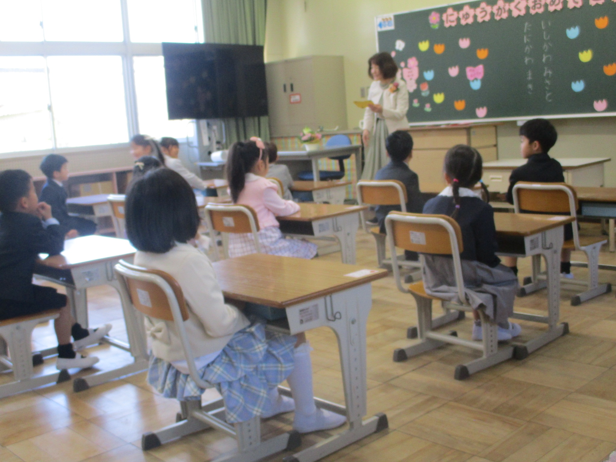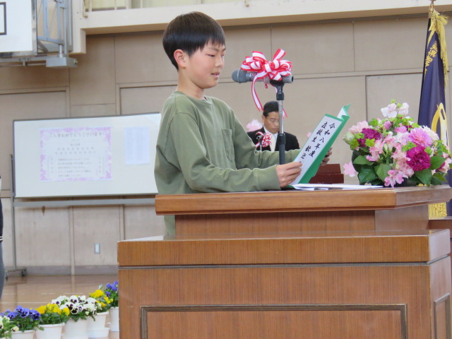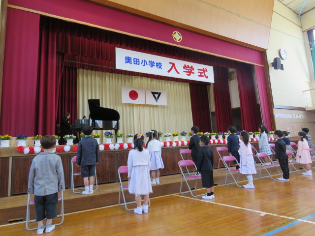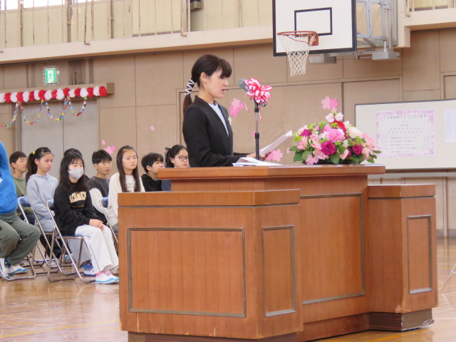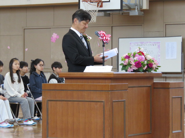 春の暖かな日差しの中、入学式を行うことができました。校長先生のお祝いの言葉にあったように、子どもたちや教職員、そして、保護者の皆様、地域の皆様とともに、「あいさつ」と「思いやり」で溢れる学校にしていきましょう。