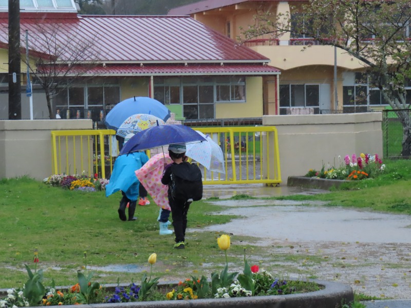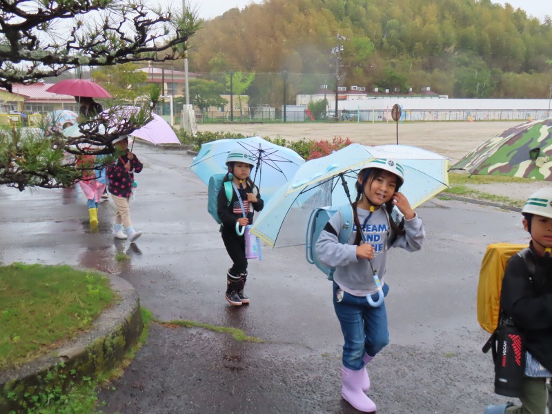 1年生は3時間授業を受けて下校しました。雨の下校で1年生にとっては早くも試練の下校となりました。明日はお休みですので、ゆっくり疲れをとってほしいですね。