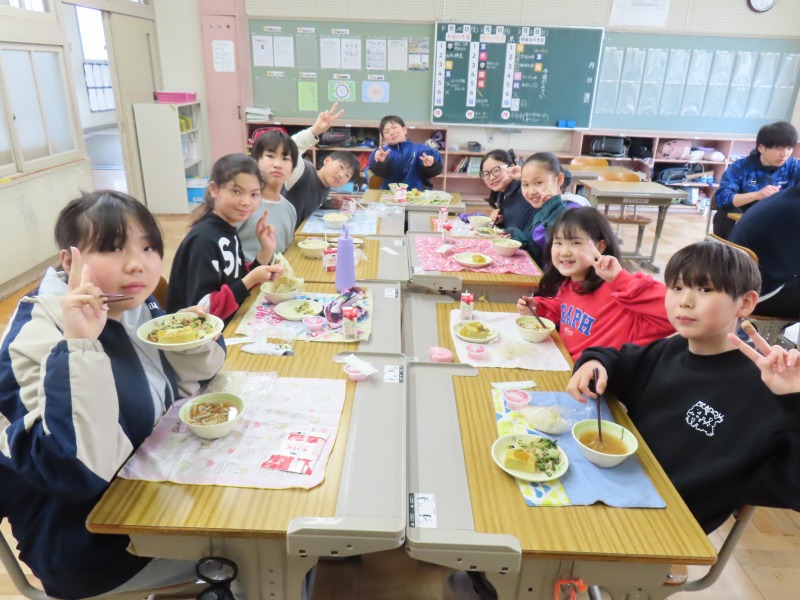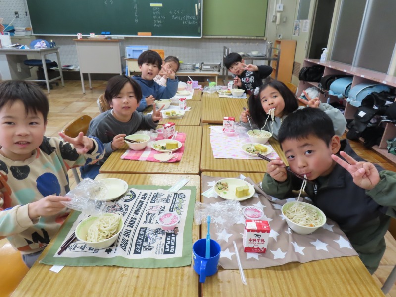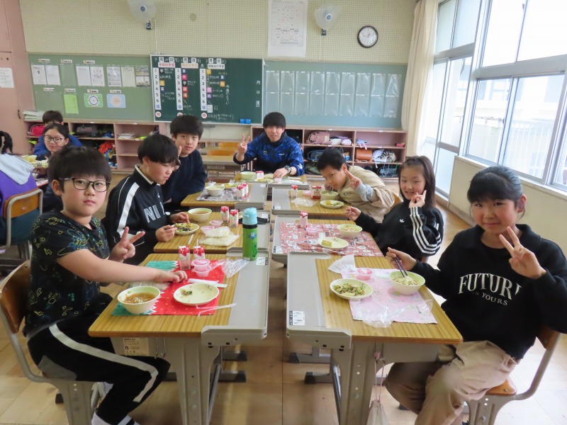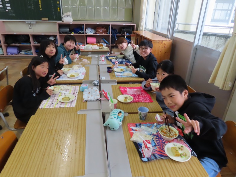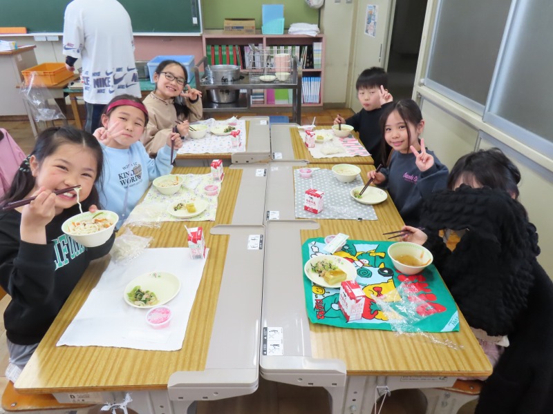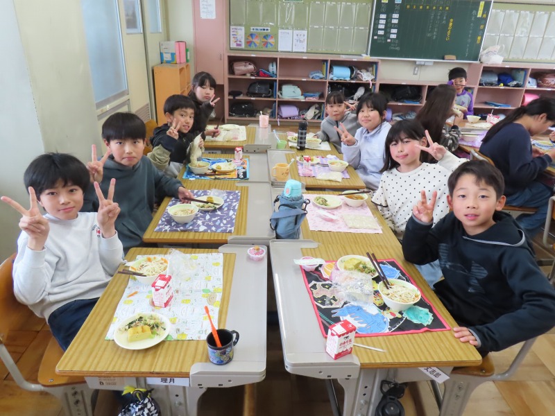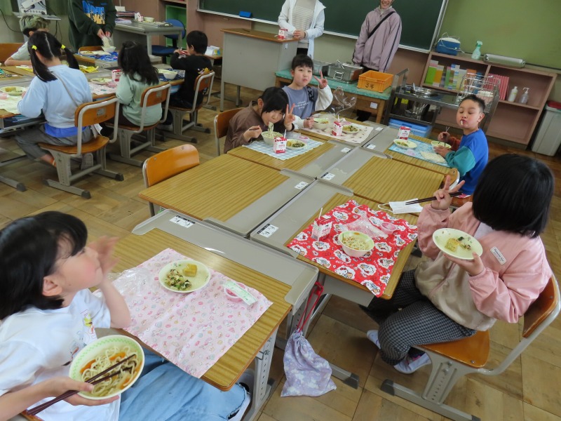 2年生から6年生は今年度初の給食です。みんなおいしそうに食べていました。