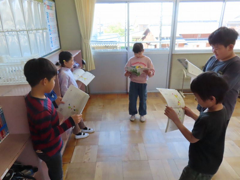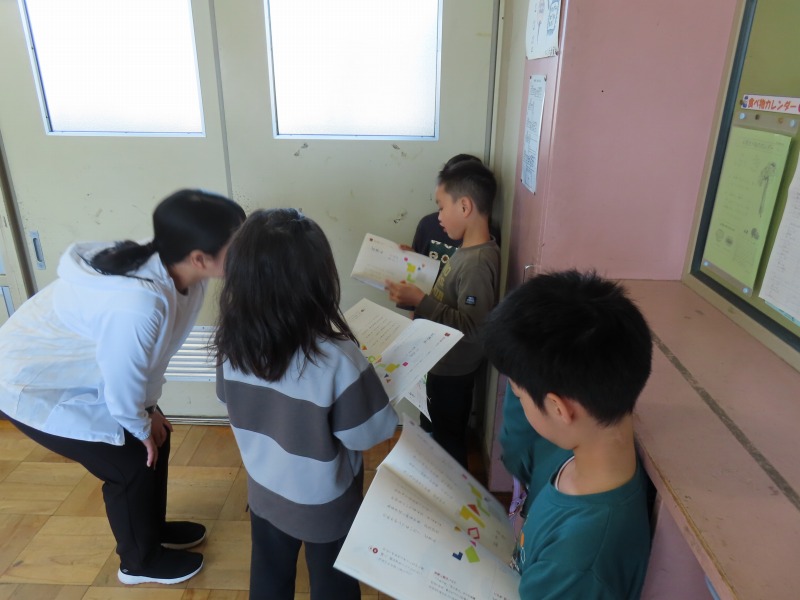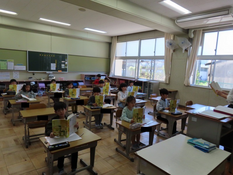 2年生は国語です。みんなで声を合わせて音読をしています。姿勢がよくて気持ちがいいです。