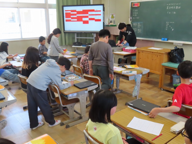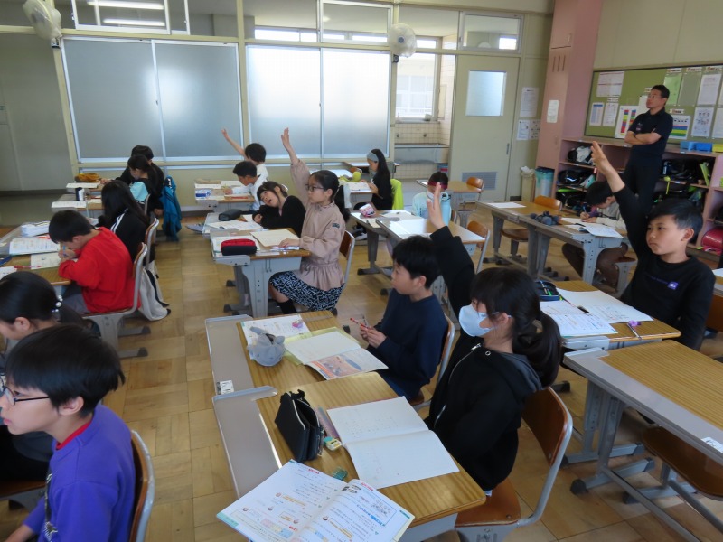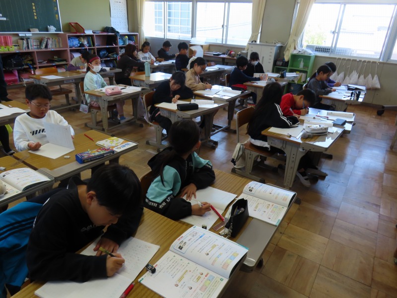 5年生は社会でした。世界の国々の名前でビンゴをしていました。6年生は音楽です。たくさんの歌を元気よく歌っています。