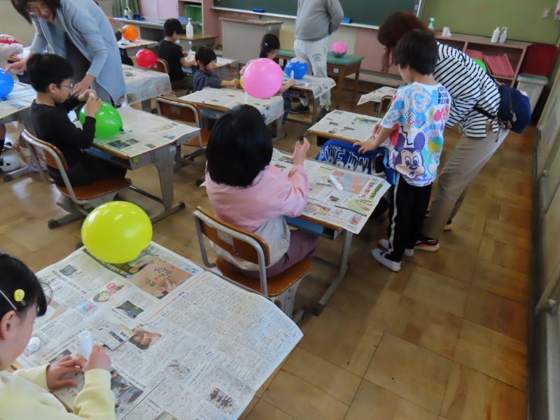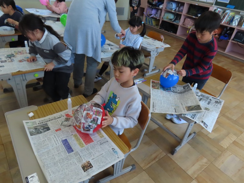 3年生は国語でグループで音読していました。また図工では風船を膨らませ、のりで紙を貼ってました。何ができるか楽しみですね。