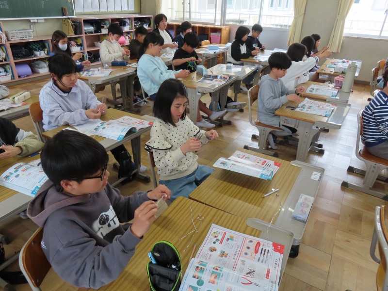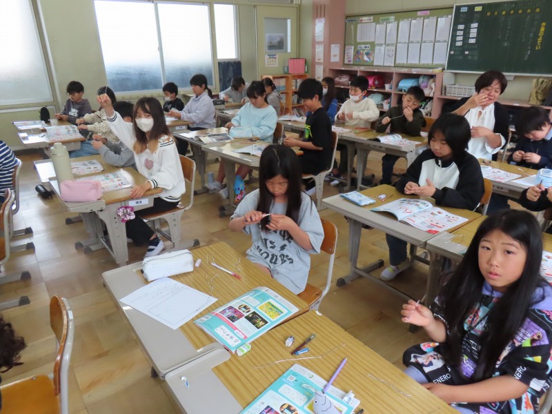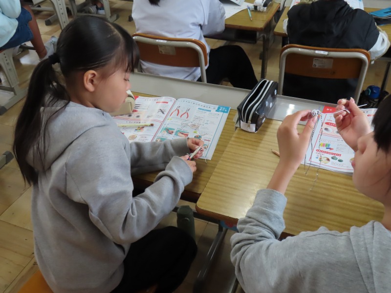 5年生は図工です。針金を使った作品作りの前に、今日は道具の使い方の練習です。