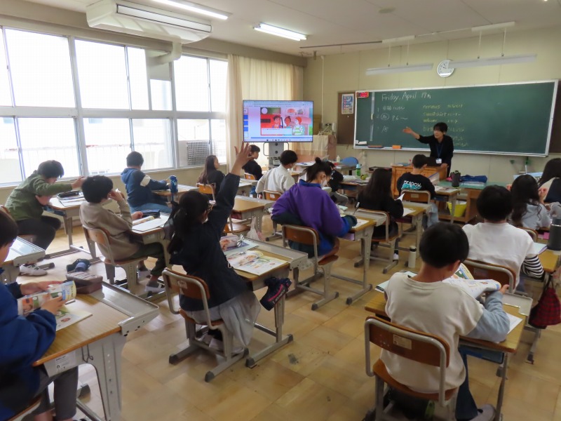 6年生の外国語活動の様子です。英語を聞き問題を解きます。みんなしっかり理解できています。