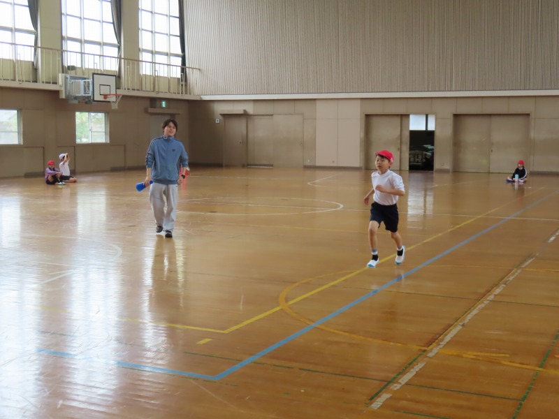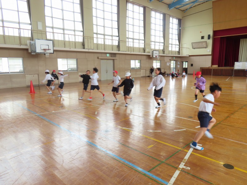 4年生は体育の様子です。体力テストのひとつであるシャトルランをしています。みんな頑張って走っていました。