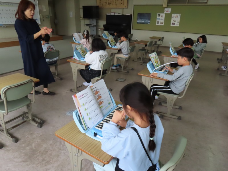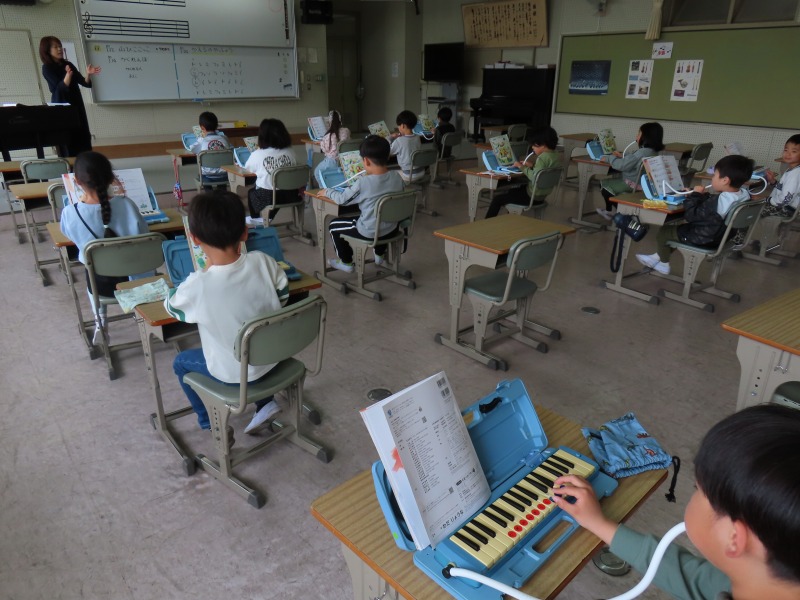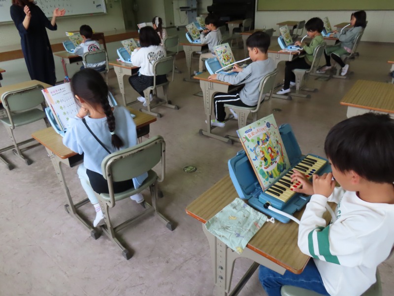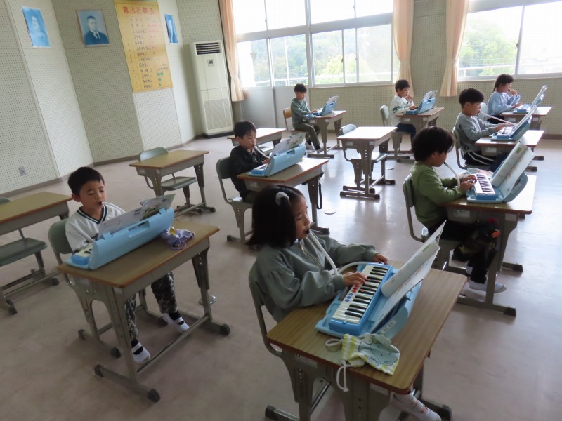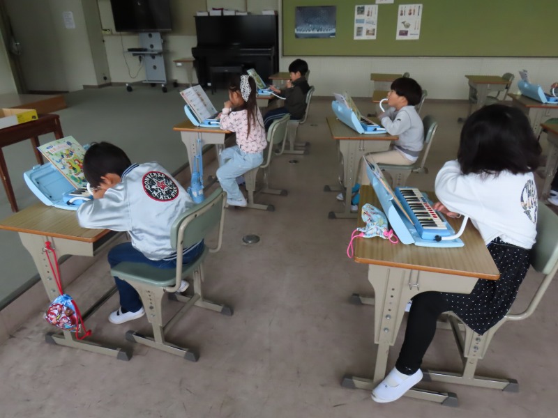 2年生の様子です。音楽で鍵盤ハーモニカを上手に合奏しています。