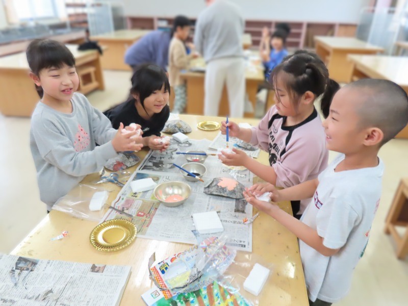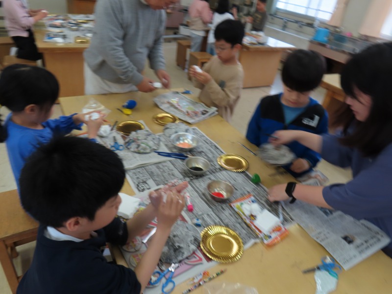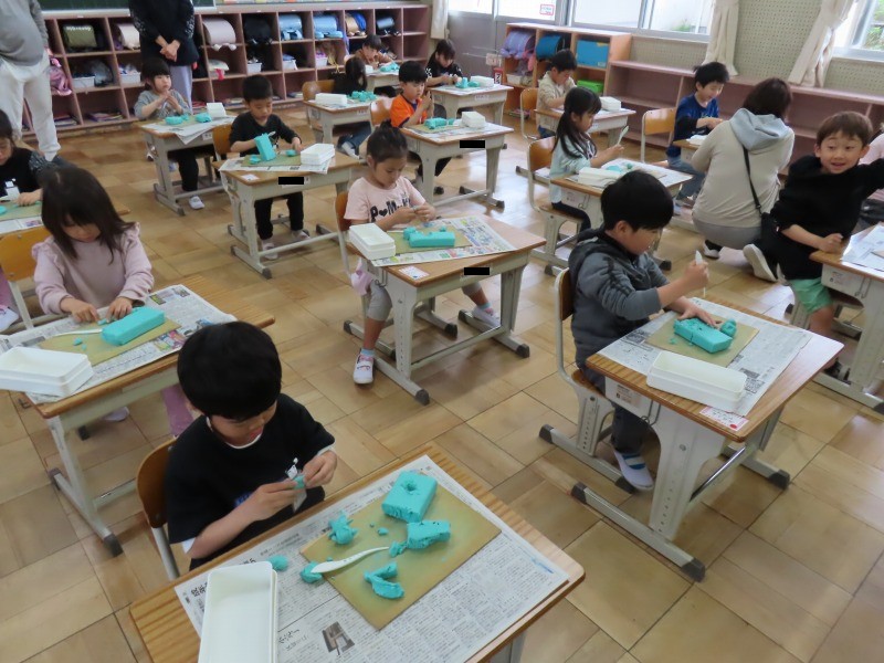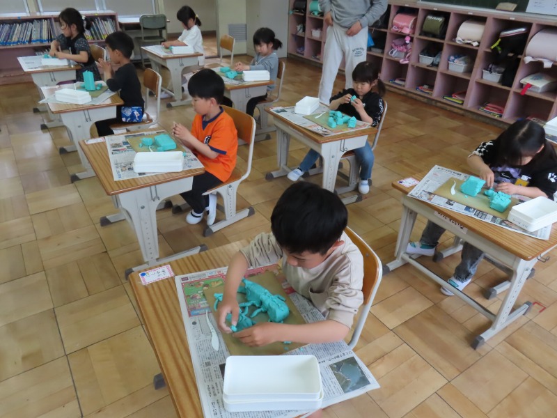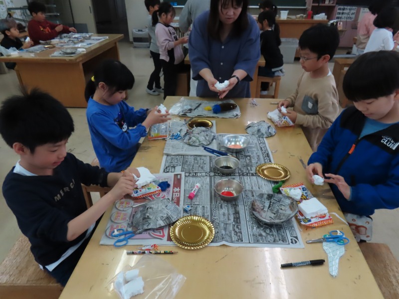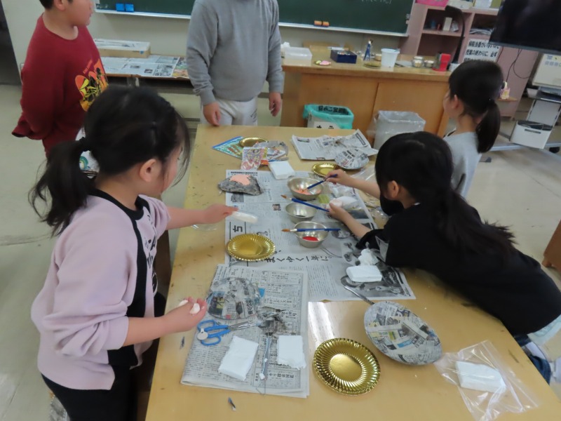 3年生は図工で、紙粘土をつかってお面作りです。楽しそうでした。