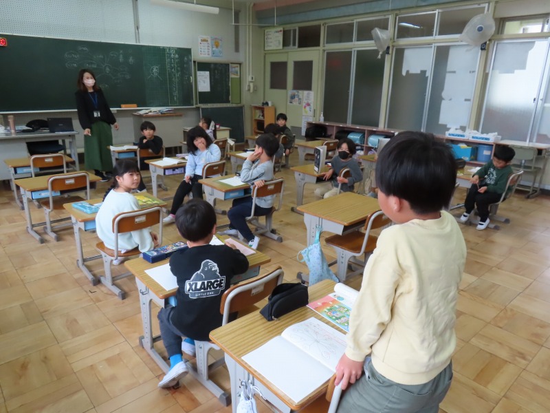 1年生の図工と国語の様子です。国語では初めての宿題(「く」の練習)が出されました。しっかりおうちで取り組んできてほしいですね。