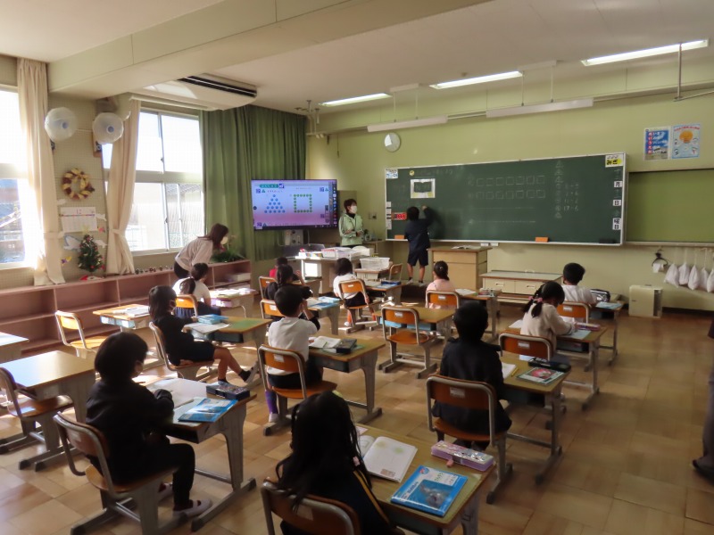 本日の授業の様子です。2年生の算数では研究授業が行われました。いつもと違い多くの先生に見守られながらの授業は少し緊張もあるようですが、いつも通りしっかり授業を受けることができました。