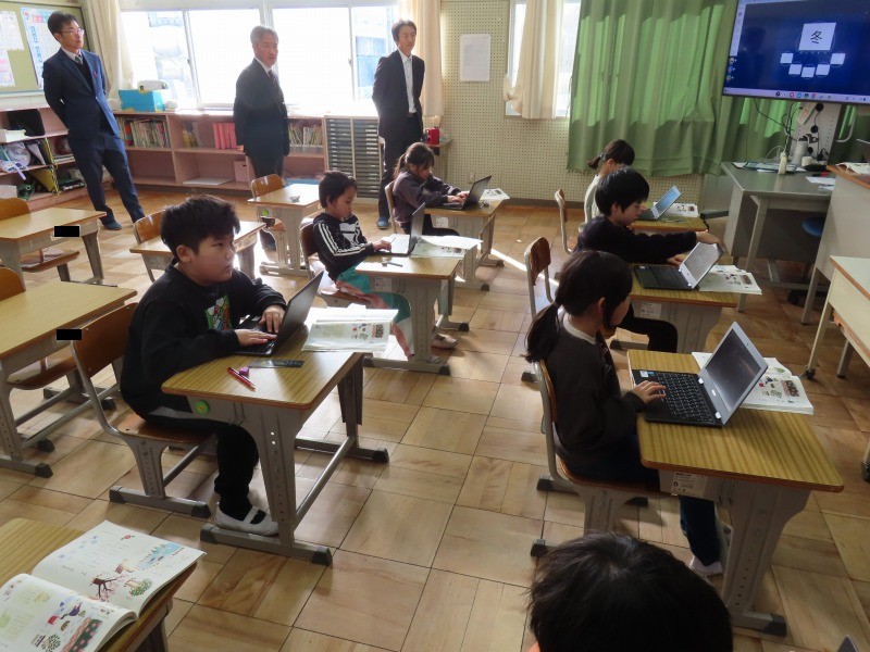 今日は町内の小中学校の校長先生や教頭先生に授業の様子を見ていただきました。どの学級も一生懸命に学習に取り組んでいました。