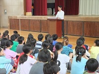 梅雨に入った6月の朝会では、校長先生から「梅雨はいやだと思うかも知れないけど、梅雨がないと農作物やプールの中止になることもあります。何事にも良いこと・悪いことは裏表です。」と話されました。